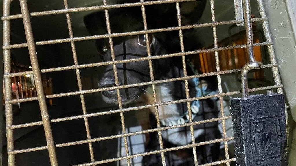Maia, a chihuahua mix, was found near the North Cargo facility on Saturday.