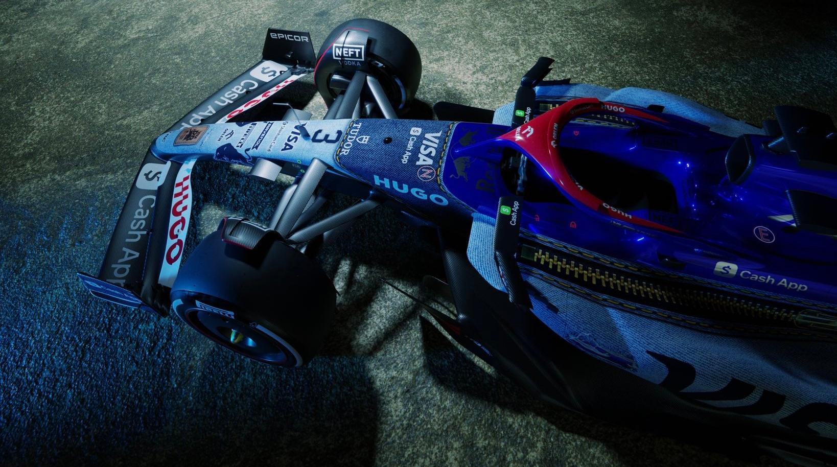 The Visa Cash App RB team will run in a special denim-styled livery for the Singapore Grand Prix this weekend in partnership with apparel partner Hugo, a division of Hugo Boss. With a pair of zippers on either side of the cockpit, and stitched pockets on the nose cone, it's a stunning departure from the normal and boring liveries that have been on every car on the grid this year. Team drivers Daniel Ricciardo and Yuki Tsunoda will also be decked out in full Hugo denim racing suits for the event.