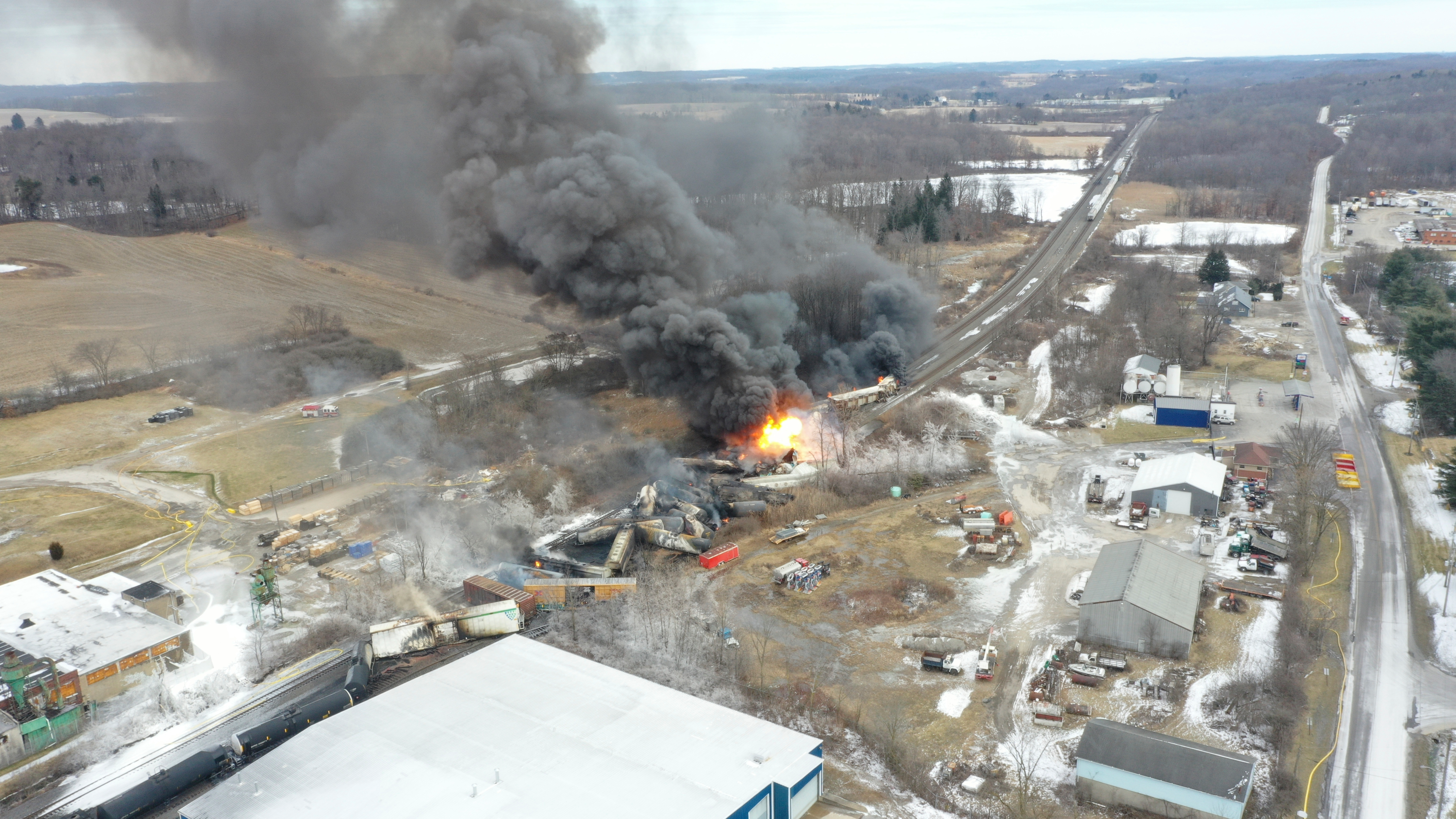 Residents within a one-mile radius of the crash have been ordered to evacuate, according to CBS News, under penalty of jail time. Their concern lies with temperature and pressure changes inside the vinyl chloride tanks, due to the nearby burning cars. Vinyl chloride, according to the Associated Press, carries risks of multiple cancers stemming from exposure. Should that chemical detonate, it could send noxious gases — or even debris from the train cars themselves — up to a mile.