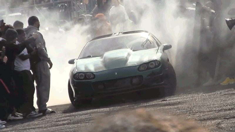 Of course, hooning it up in an empty lot with crowds of people mere feet away from vehicles driven by amateurs isn't the safest mix.