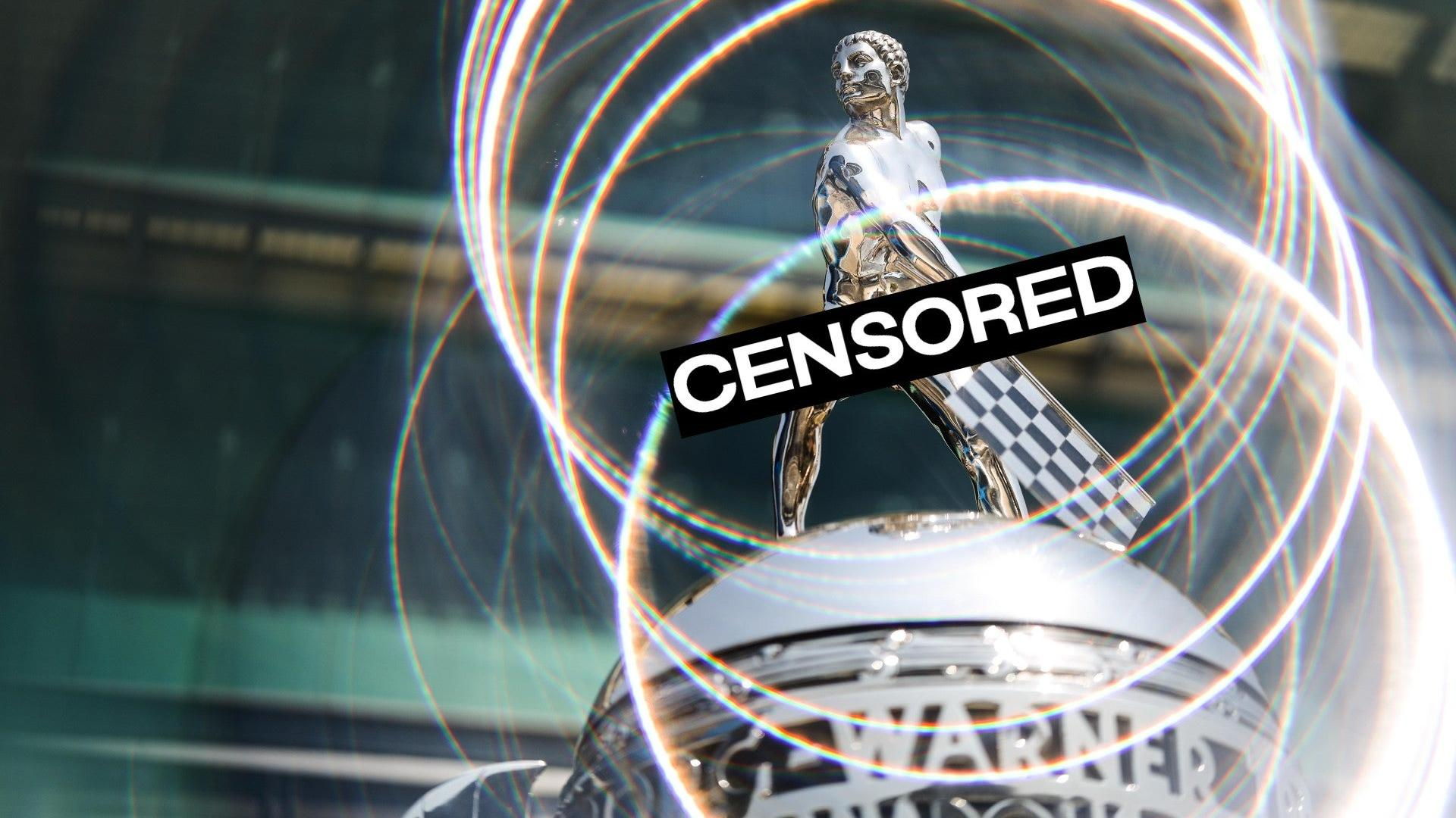Each year, the winner of the Indianapolis 500 is awarded, among other prizes, a chance to celebrate with the iconic Borg-Warner trophy. If you look closely at any photo of this trophy, you might notice something: It's almost exclusively photographed from the rear. That's because the little man on the top is completely nude.