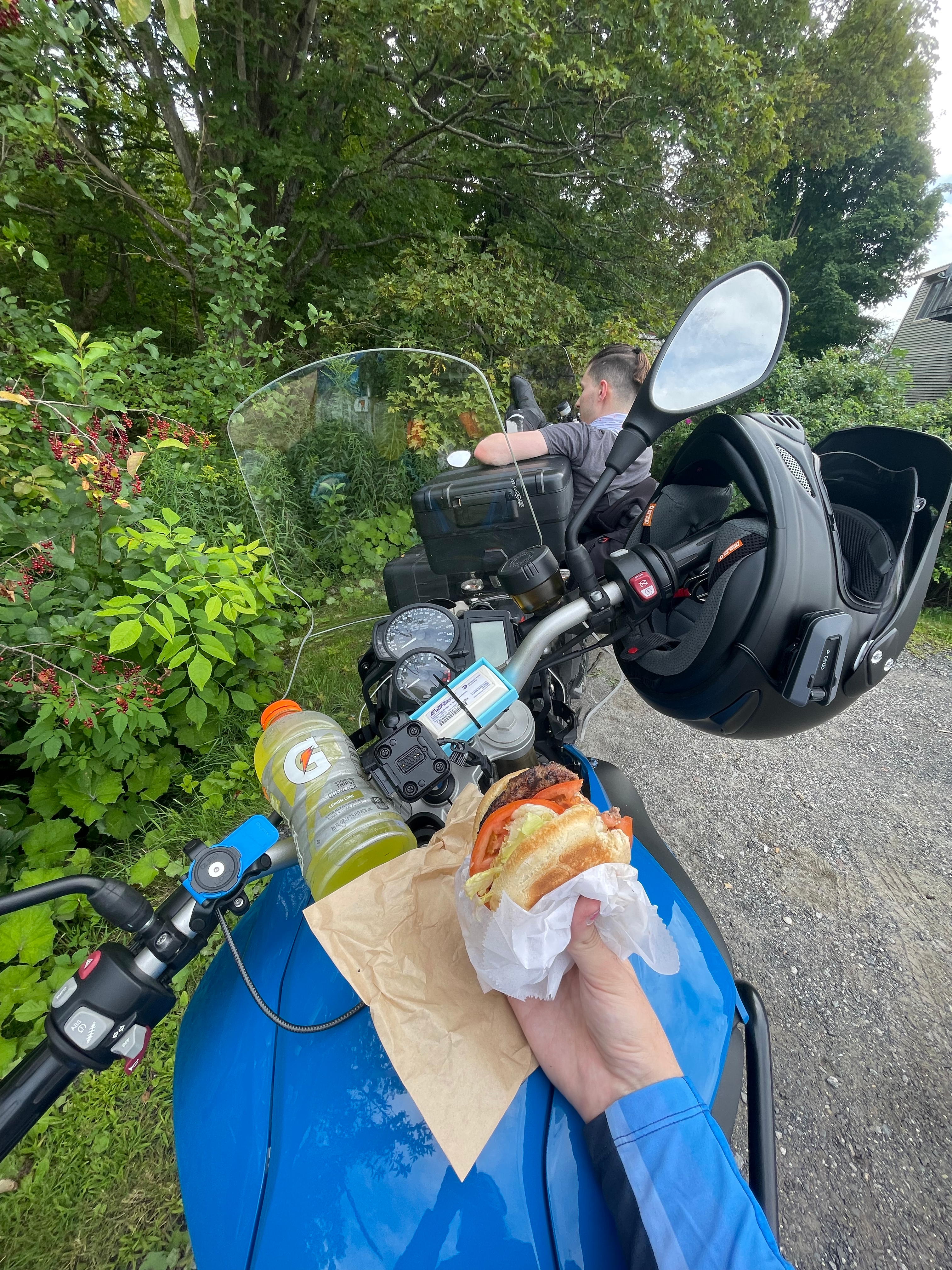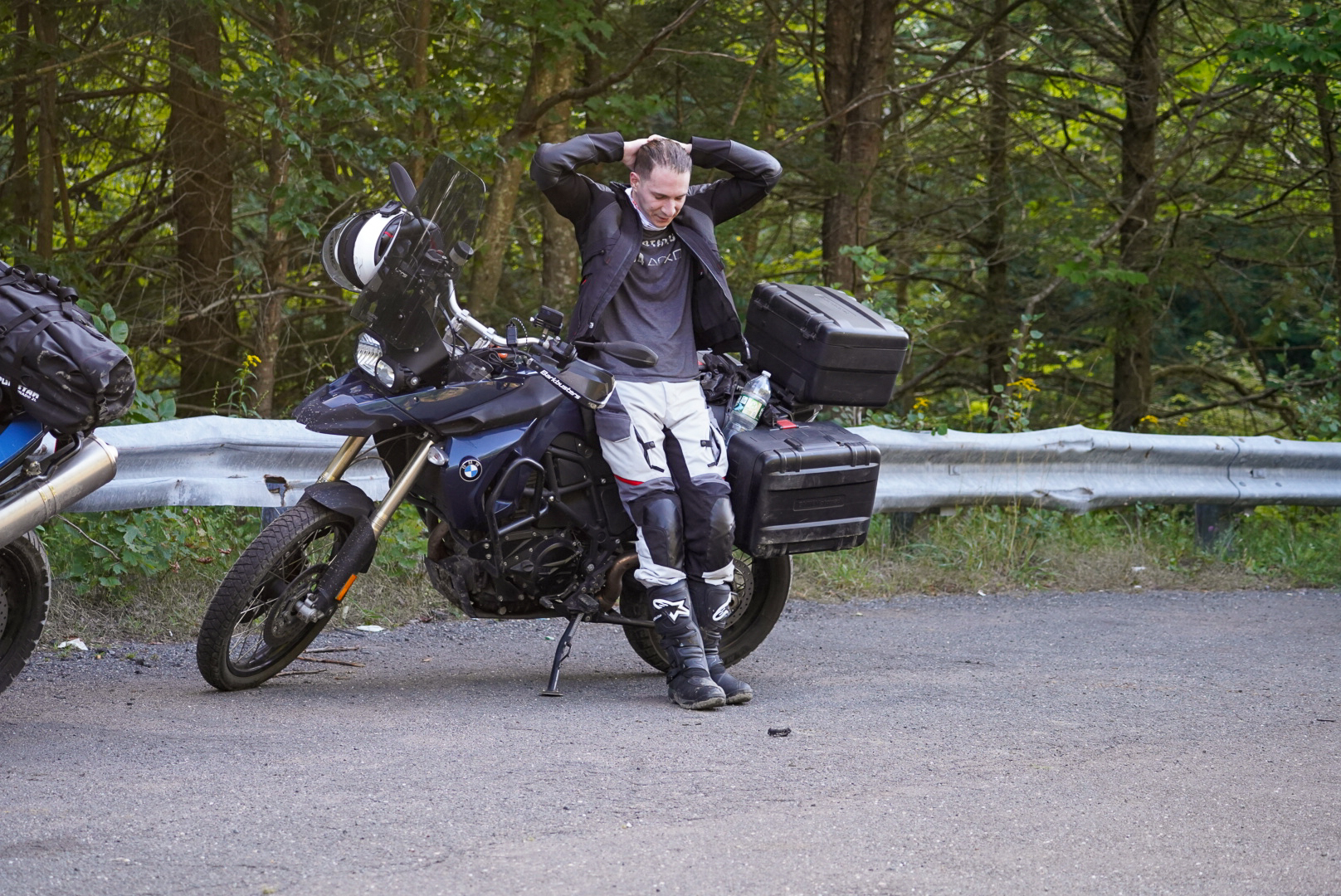 One issue I assumed I'd encounter, though, turned out to be a complete red herring: Aesthetics. I figured that, for lunch stops and gas fillups, I'd get reactions similar to Marty McFly entering 1955 — while Graham, in simple ADV gear, would look like a regular human being. It turned out, though, that the all those vents and pockets and waterproof membranes start to take a toll on a garment's appearance, and ADV gear looks equally motorcycle to people who don't ride. In the end, we both received an approximately equal number of unnerved looks when we stopped at a small-town burger joint for lunch.