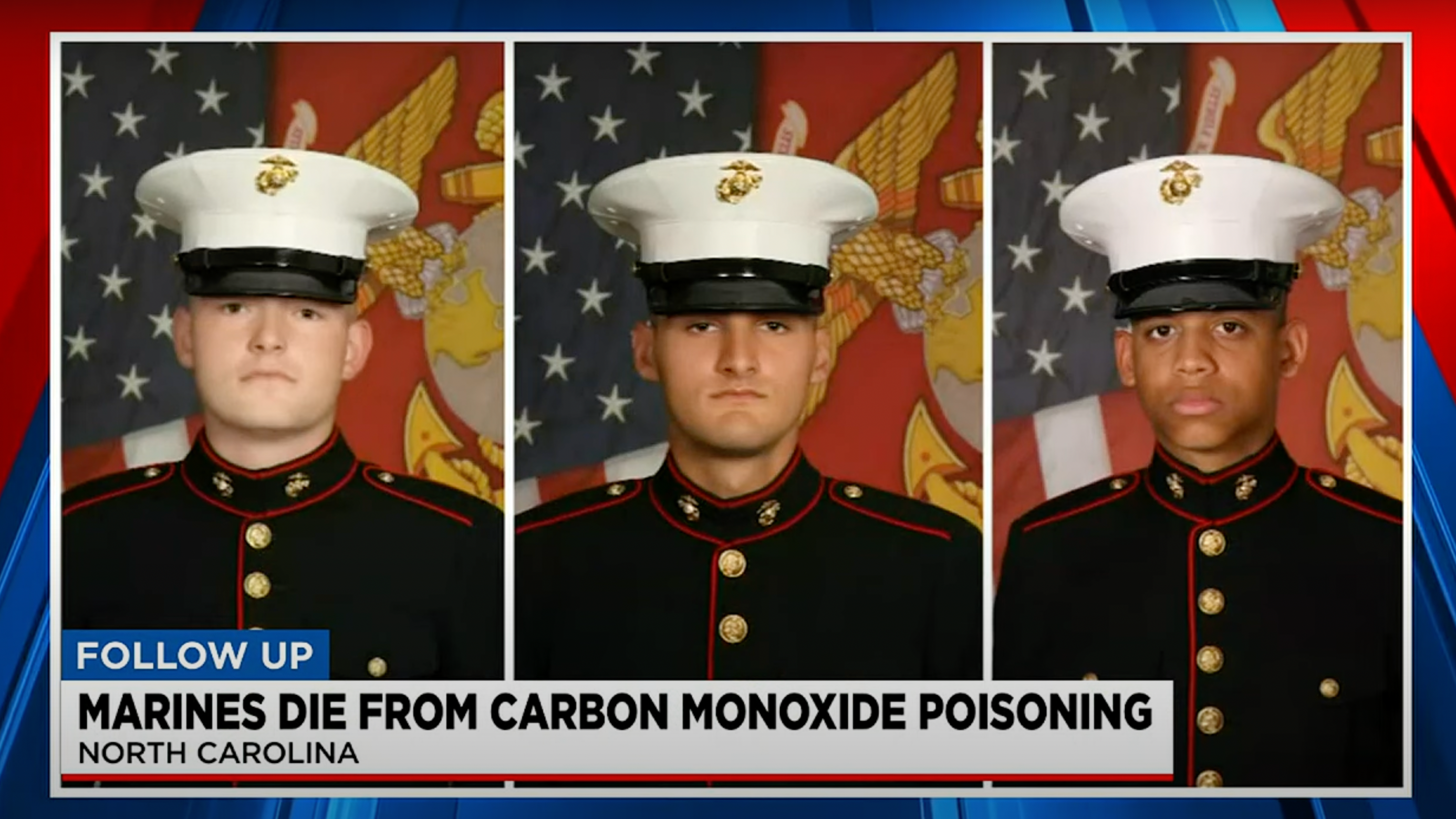The three North Carolina–based Marines died of carbon monoxide poisoning.