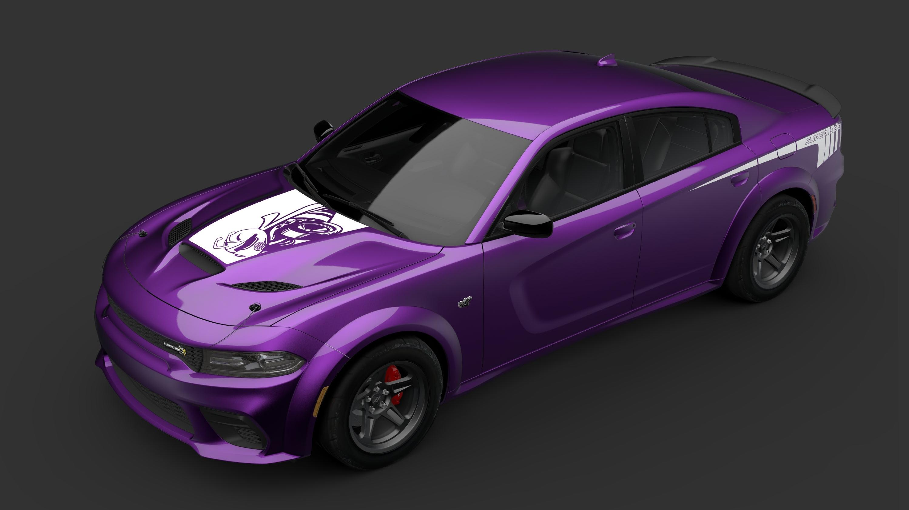 Only 1,000 Super Bee models will be made for this run — 500 Scat Packs in B5 Blue and 500 Scat Pack Widebodies in Plum Crazy (which I have previously established as one of the greatest vehicle colors in the world).