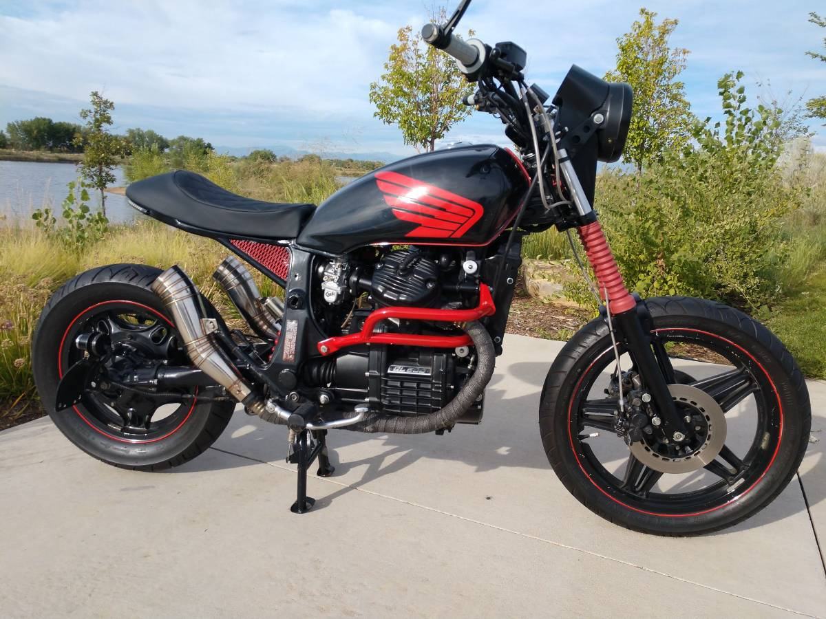 I've long wanted to try one of these Silverwings. Ostensibly a tourer, built as a yougner sibling to the venerable Gold Wing, but with a longitudinal V-twin hooked up to its rear shaft drive. Of course, most Silverwings now seem to have become CX500-style brats, scramblers, or flat trackers, but not all are done with this level of detail.