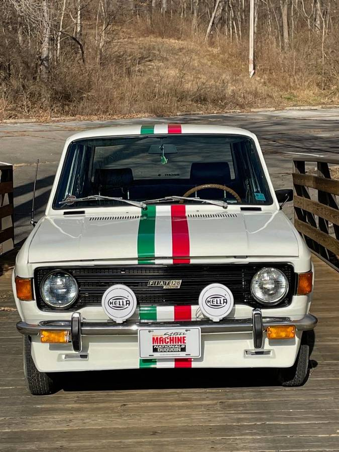 This, then, is one of the best cars. It's a Fiat 128 that looks rally-ready, though it appears to have never been driven particularly hard. It's just in such good shape — how could this have ever jumped on a gravel hill?