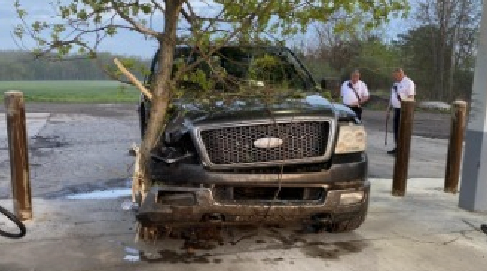 Drunk Teen Pulls Up To Gas Station With Tree Stuck In His Ford F-150