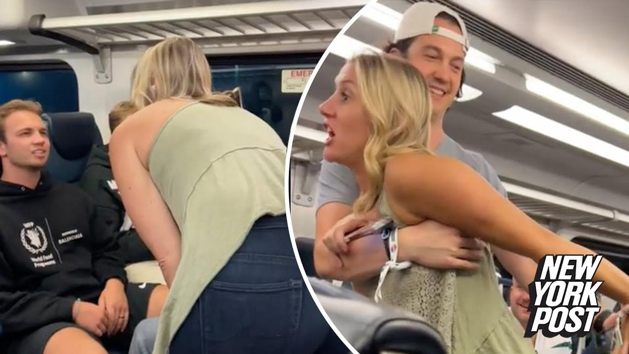 Later on, one of the men Pinnex was going after stood up, said something we couldn't understand, sat back down and shook his head. Off-camera we can hear someone decide to be sexist by saying "Women... in 2023, we're allowing women to think they're the man." So, all around there's some real solid assholeishness. Really great people all over this train.