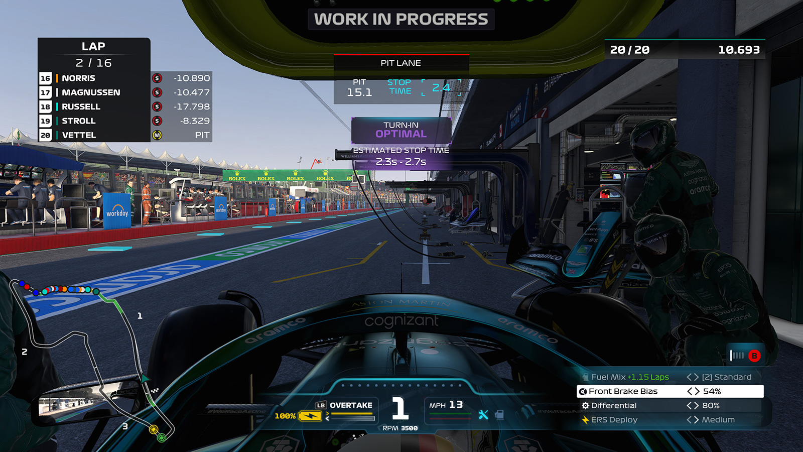 New for F1 22 is a more immersive pit experience, which tasks the player with turning in at the precise moment to ensure an optimal entry and thus, an optimal stop. It sounds like a good idea on paper, though the way Codemasters has implemented it — pressing the "A" button in time with a countdown like a quick-time event — feels like somewhat of a missed opportunity. Even just directing the player to turn left or right at the opportune time would feel a bit more natural.