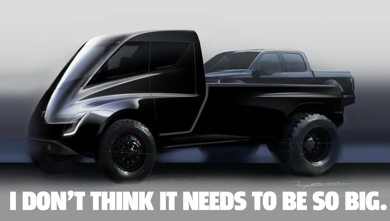 If it does happen, great, there's some interesting electric pickup competition already happening out there. I just hope it's not actually based on the Tesla Semi, because that'd just be too damn big.