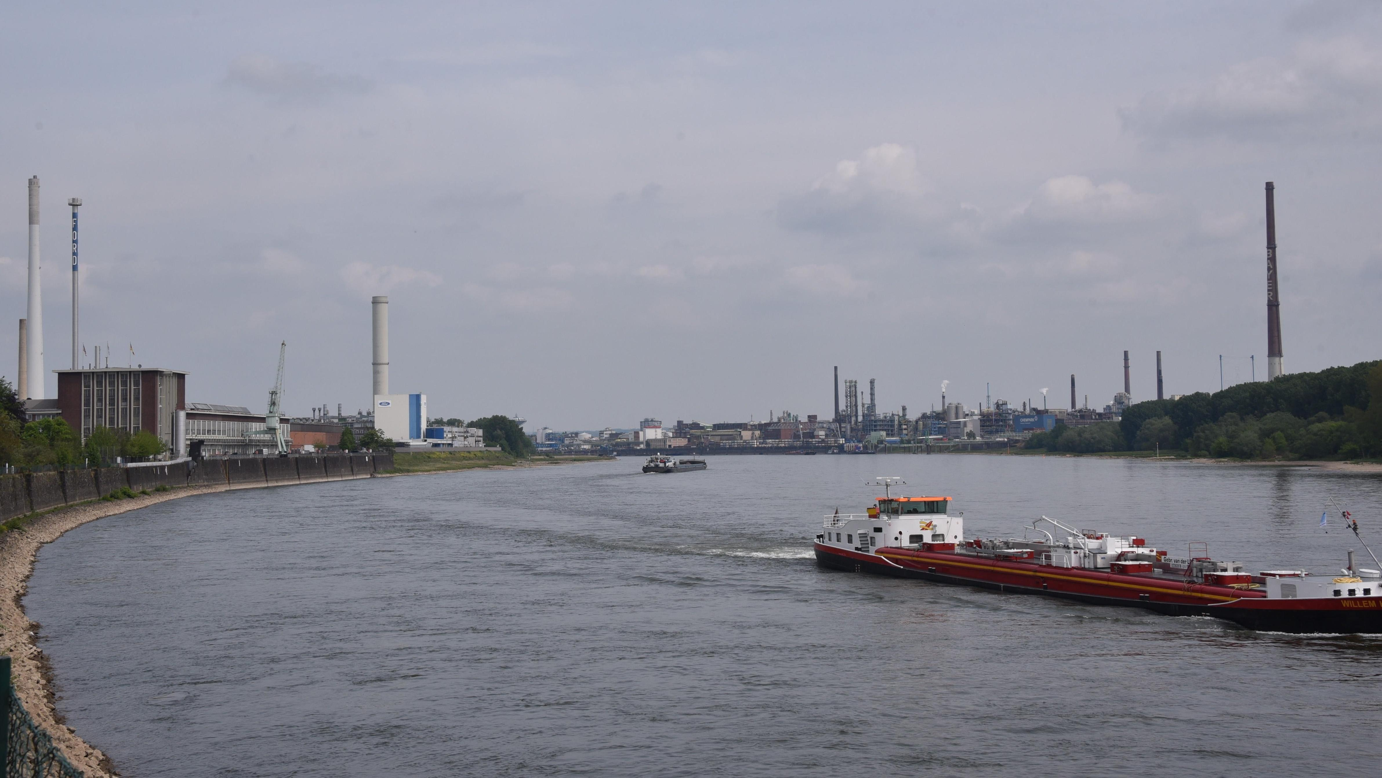 The summer dry spell has left the Rhine's water level in Cologne consistently low: on August 12, the river was at 84 centimeters, or about 33 inches. If levels dip by another five inches or so, transporting the usual loads won't be possible.