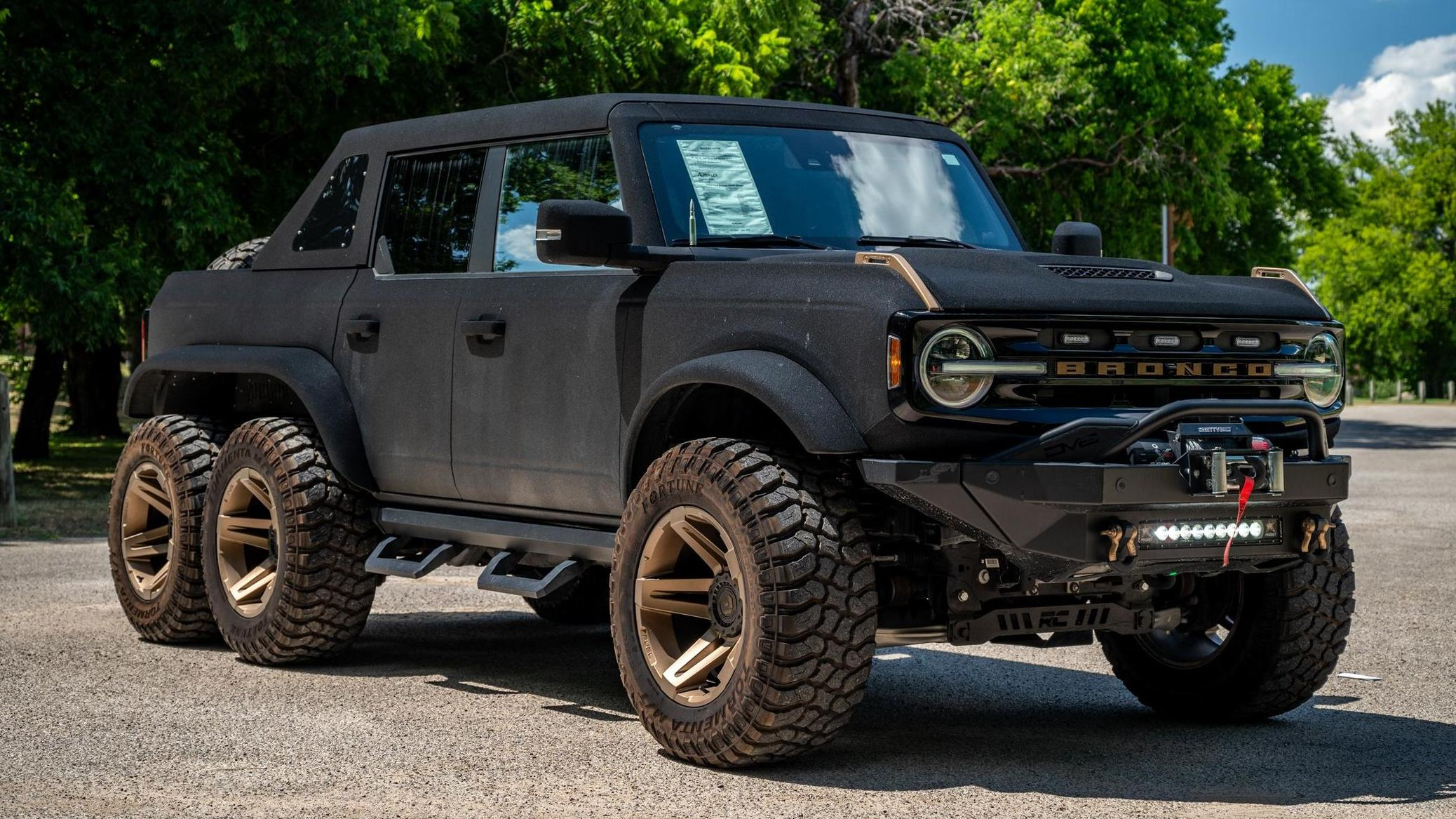 When an automaker introduces a new SUV that's as close of a competitor for the Jeep Wrangler as the Ford Bronco is, it's only a matter of time before Jeep mods start showing up on Broncos. That's definitely the case with the 2022 Ford Bronco that's currently for sale on Cars & Bids. It's been turned into a 6x6 by a company called Apocalypse Manufacturing and, somewhat inexplicably, covered in Kevlar. Also, it looks like total ass.