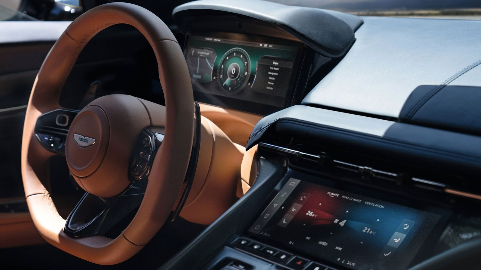 Inside, Aston has made ample changes to the car as well. Up front, there's a new infotainment system, based around a 10.25-inch screen that has been paired with a Bowers & Wilkins stereo. Thankfully, the touchscreen hasn't entirely replace the car's need for physical buttons, and there are plenty of tactile controls across the cabin.