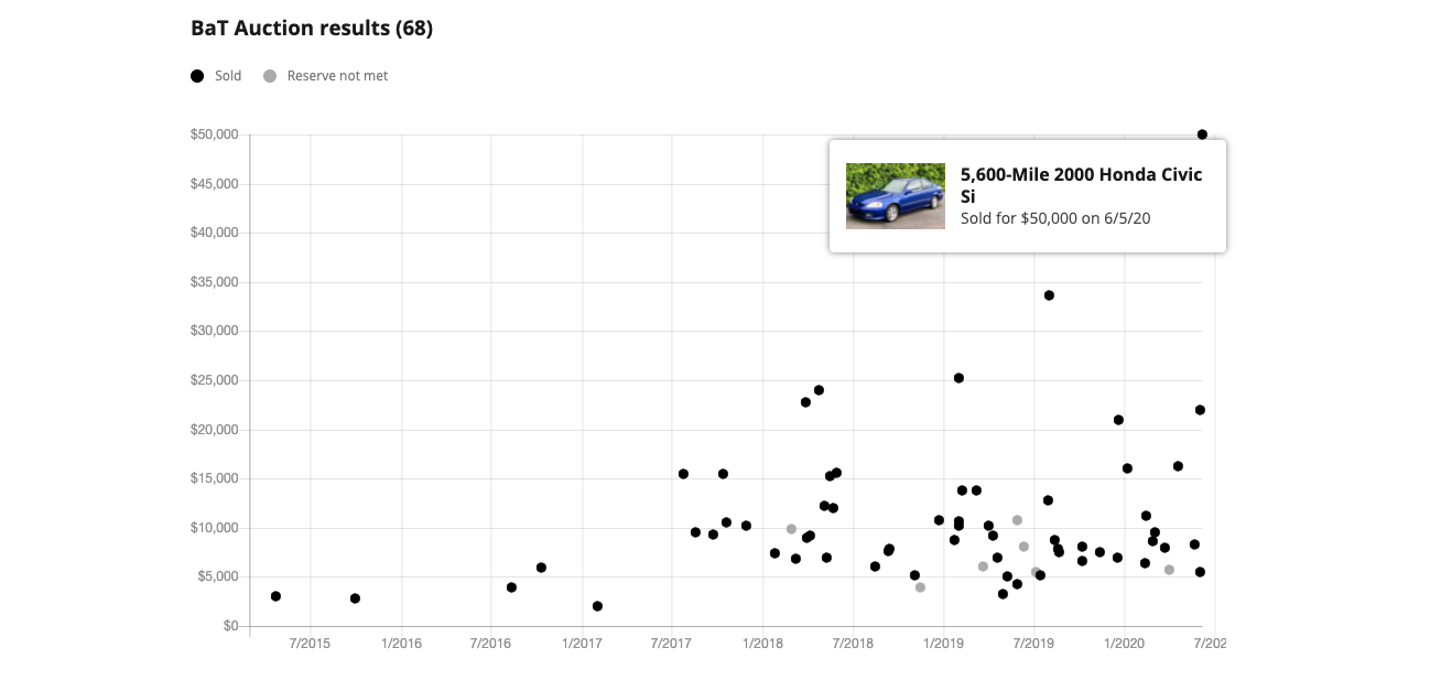 Sold: 5,600-Mile 2000 Honda Civic Si for $50,000. https://t.co/Uxqjd9KILa