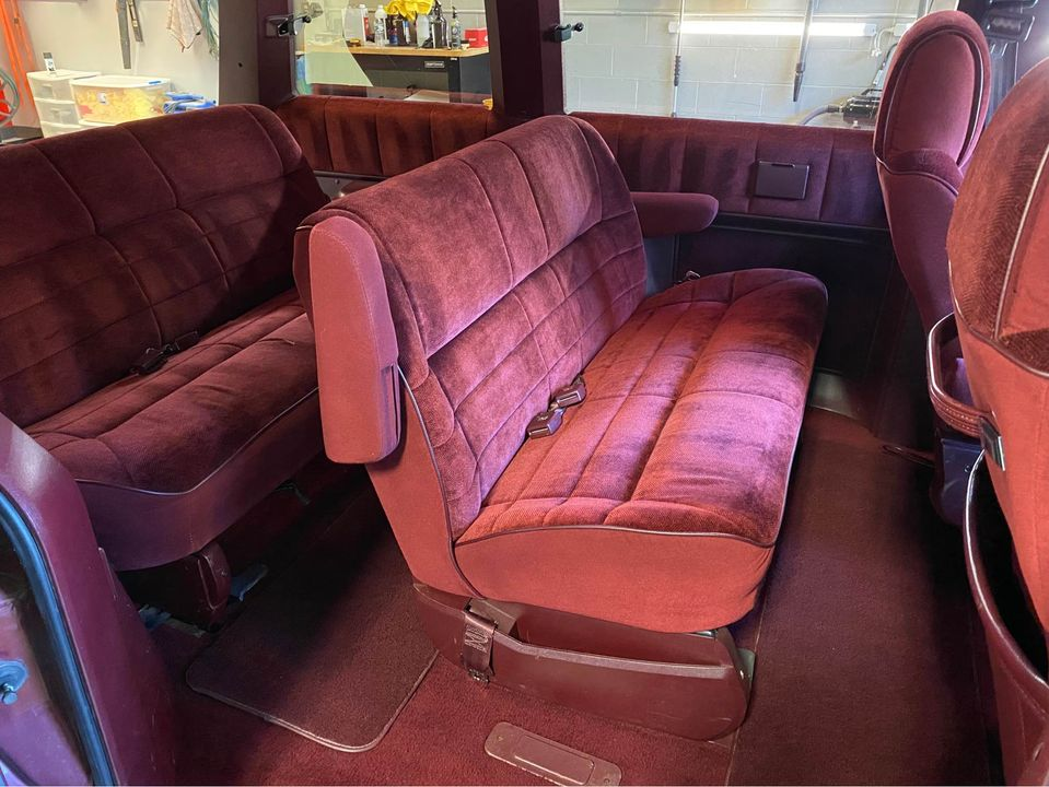 These vans are responsible for sparking the minivan craze that swept the nation until SUVs took over. And this van is unquestionably cool, with its red exterior and burgundy interior to match.