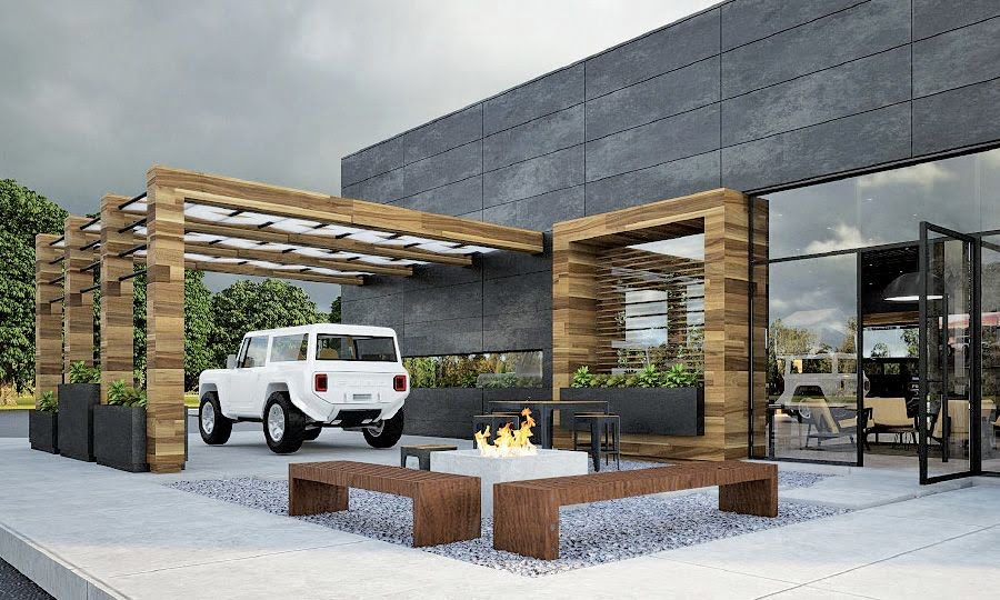 Earlier in the year, Ford shared official renderings of what these stores may look like, and they were weirdly chic — like Volvo dealerships, except maybe with more faux fireplaces. I am amused that rather than populate these computer-generated models with new Broncos, Ford's artists filled them up with copies of the 2004 Bronco concept.