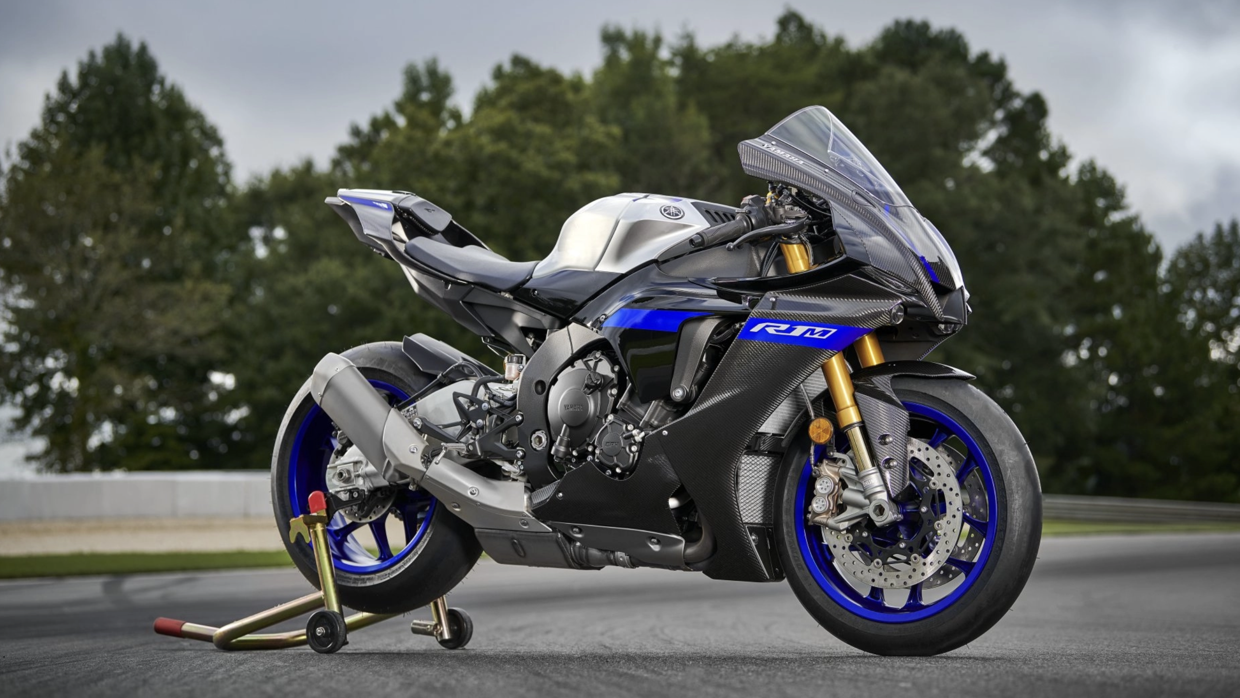 The Yamaha YZF-R1M adds some track-day goodies (GPS and data logging) to the base R1, and also sheds a few pounds thanks to its magnesium wheels and the use of carbon fiber in the fairing.