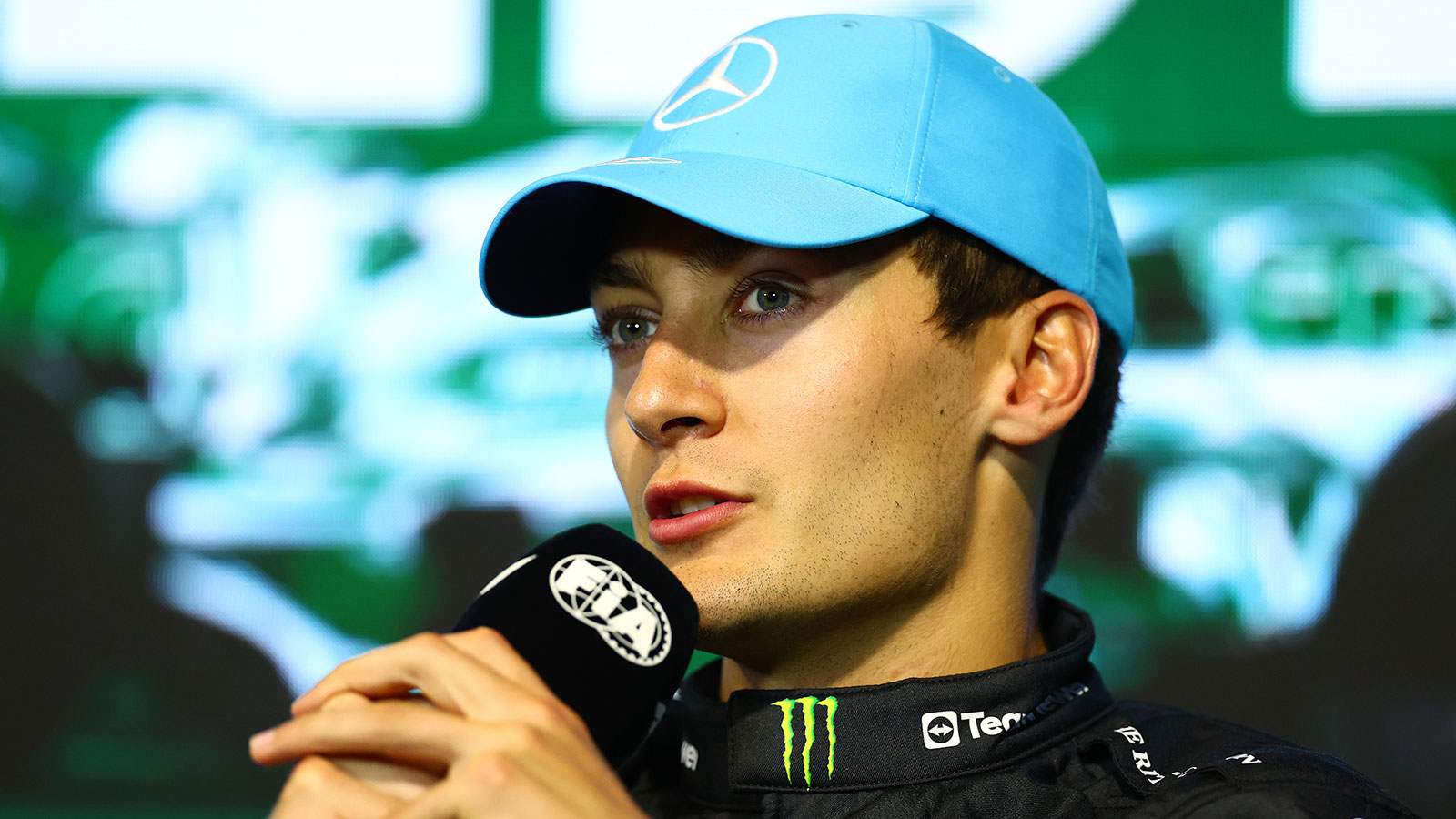 So, third place was handed to Mercedes' George Russell, who got his hands on the trophy and, presumably, Alonso's now-empty bottle of Champagne.