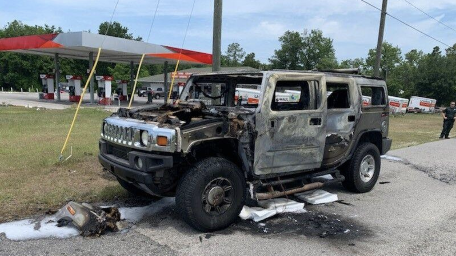 A Hummer burned in Homosassa, Florida, Wednesday while attempting to haul four filled five-gallon gas cans in the back seat. The Citrus County Fire Rescue is investigating the cause of the fire, but I have a hunch on what probably caused it to do as much damage as it did (the 20 gallons of gasoline in the back).