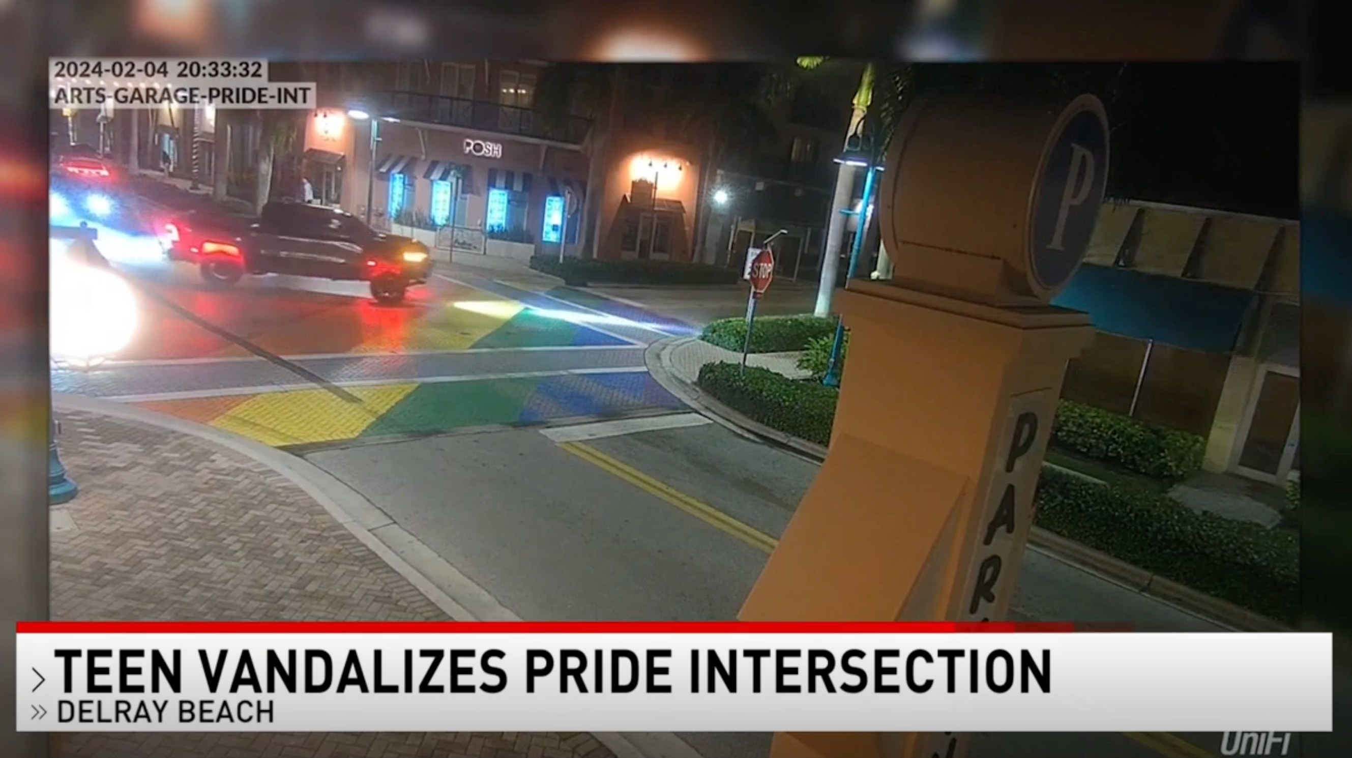 A 19-year-old Florida man has been arrested after he was caught vandalizing an LGBTQ Pride mural painted at an intersection in Delray Beach, Florida. Dylan Brewer was caught on camera doing burnouts through the intersection multiple times. In addition to the surveillance footage, several bystanders also recorded him and sent the videos to police reports the South Florida Sun Sentinel. Brewer has since been charged with both felony criminal mischief over $1,000 and reckless driving.