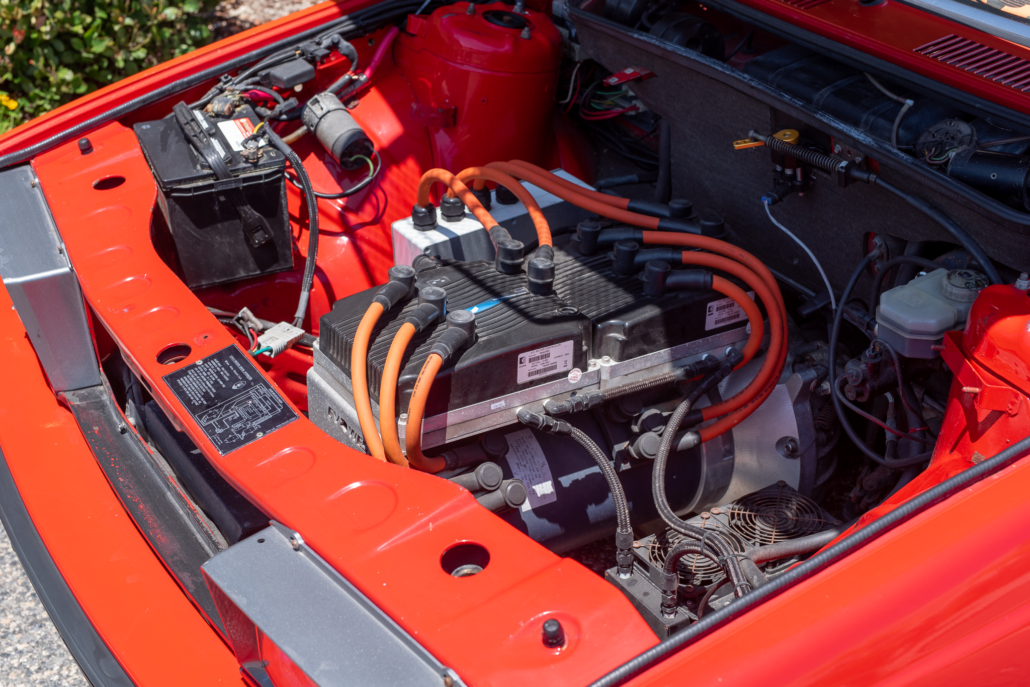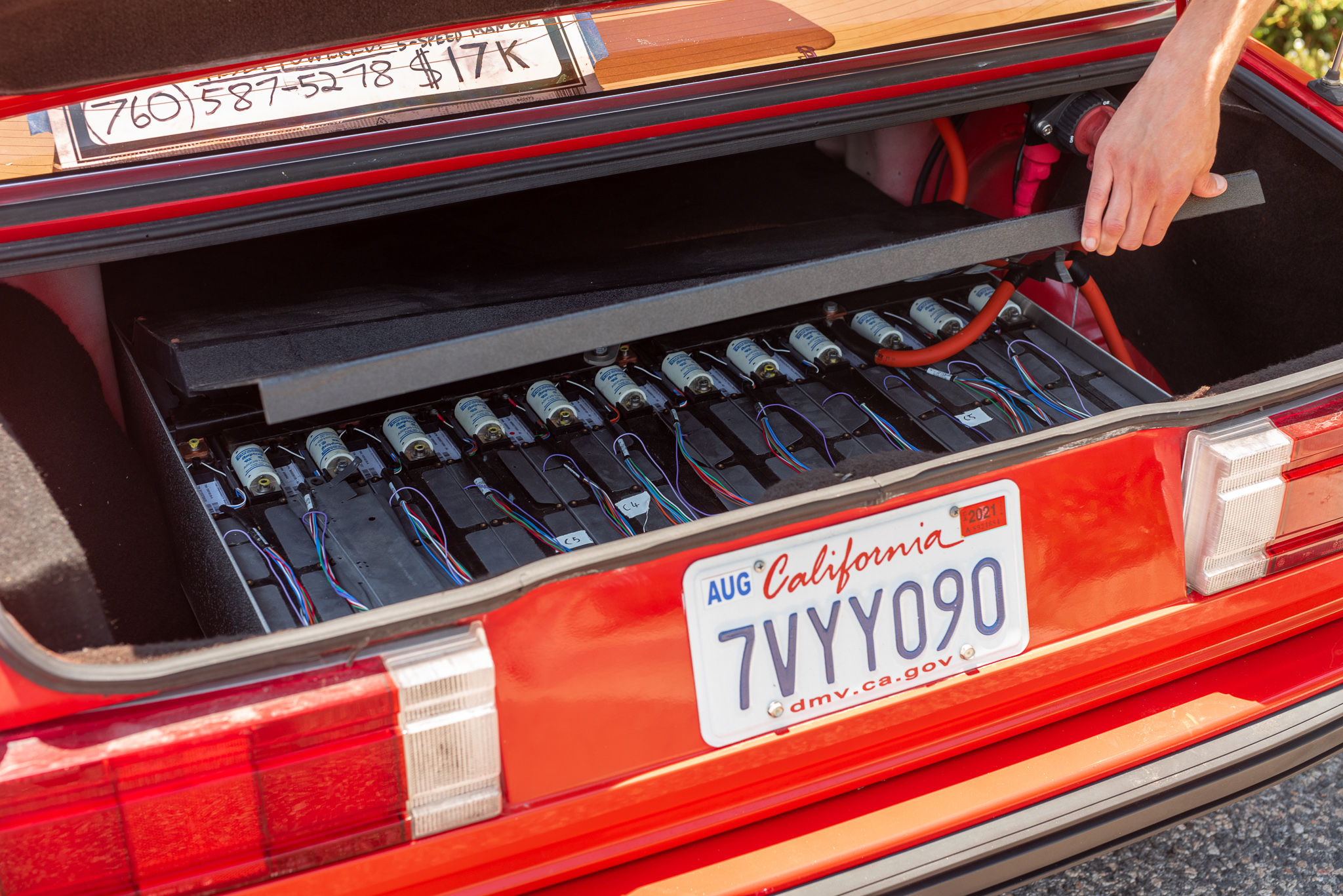 Unless, of course, you plop in a few Smart car batteries and an AC motor. Matt purchased the car as a running project. He works at an EV conversion shop and is very electrically and mechanically minded, but his ownership started after it was a completed car. The Biturbo was previously featured on Wheeler Dealers as a finished swap in need of some TLC (he bought it after it appeared on the show), and Matt estimates the original conversion was done in the neighborhood of 20 years ago and originally featured a lead-acid battery system.
