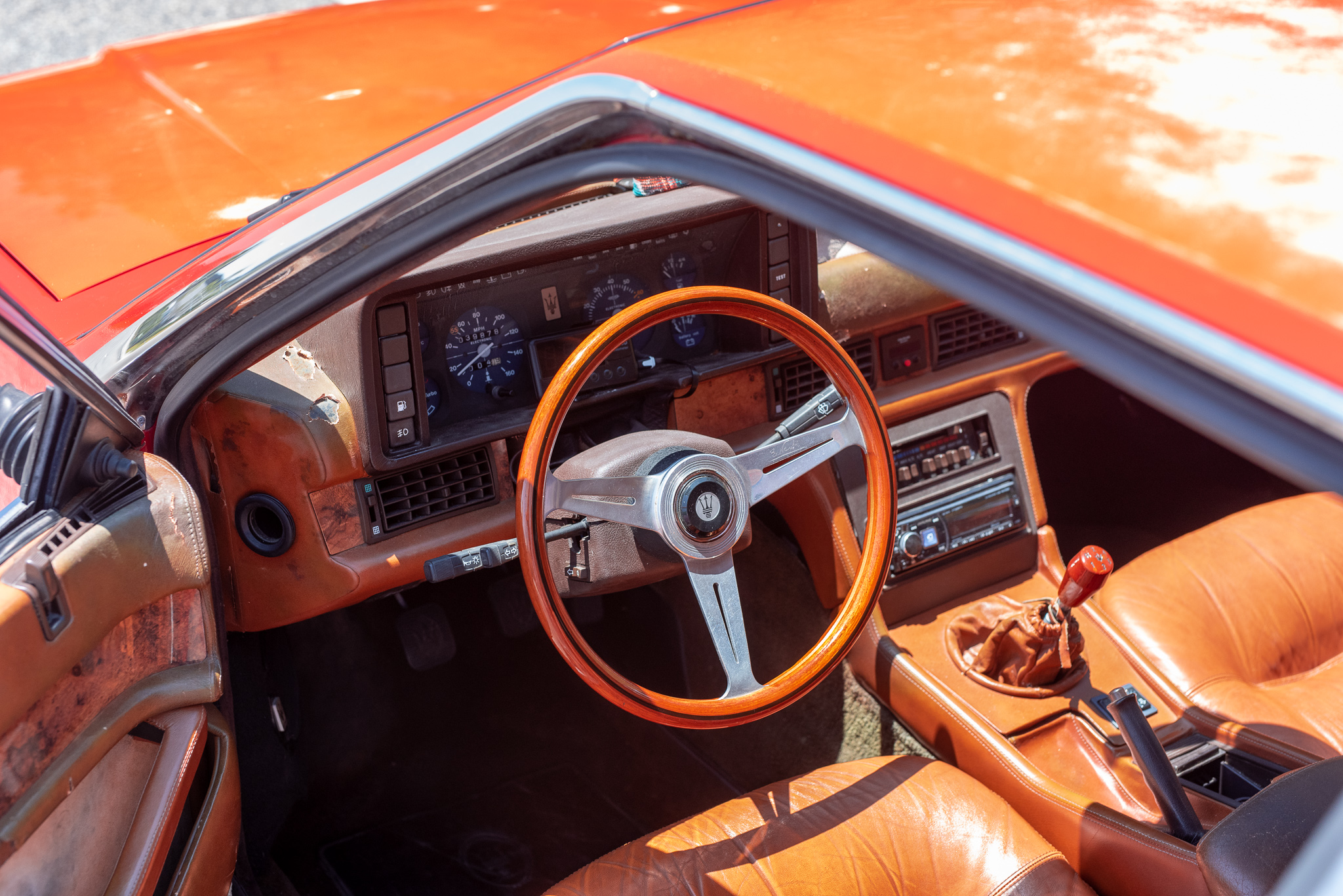 This is Matt's 1985 Maserati Biturbo. Ordinarily, it would sport an eighteen valve, 2.5 liter V6 twin-turbocharged engine – the first ever twin-turbo in a production car – fed air and gasoline through a single Weber carburetor. The power plant was backed up with a dogleg-first five speed. Stock was around 185 horsepower with just a tad over 200 foot-pounds of torque on tap, although to make those numbers, it would have to run. This was generally a problem for the extremely finicky single carb'd twin turbo system, and with Italian wiring tying the entire car together, keeping a Biturbo in running condition is a Herculean task.
