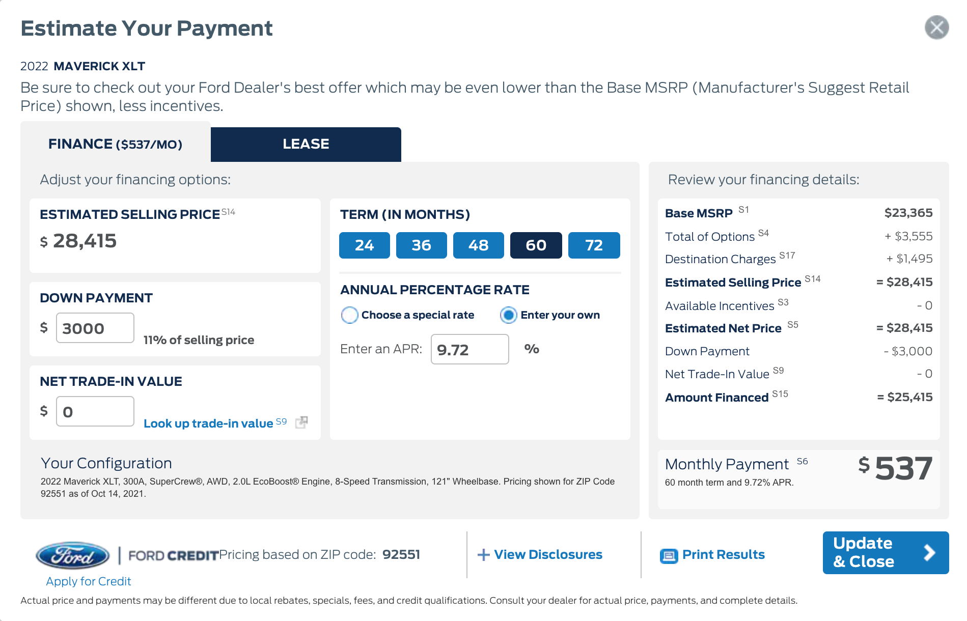 The program, called Ford Maverick Financing Guaranteed Approval Program, started in September and runs through March 2022. The main qualifier for the program is a minimum credit score of 620. There are other requirements as well: