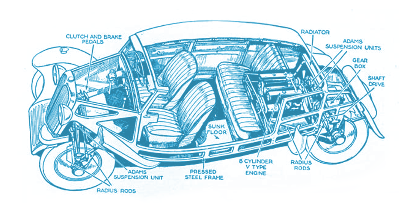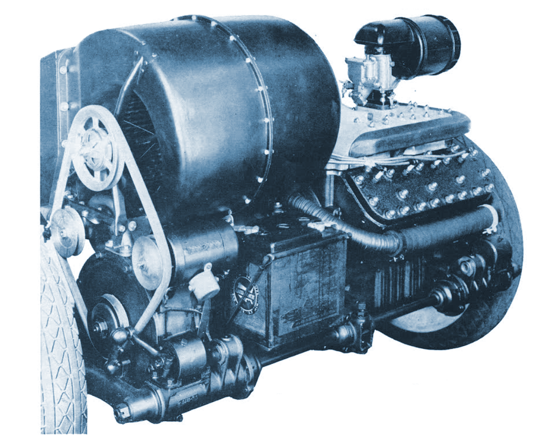 According to the article, this transverse 60 horsepower, flathead V8 drivetrain was from an experimental car called the 92-A, which, while drivable, never really panned out.