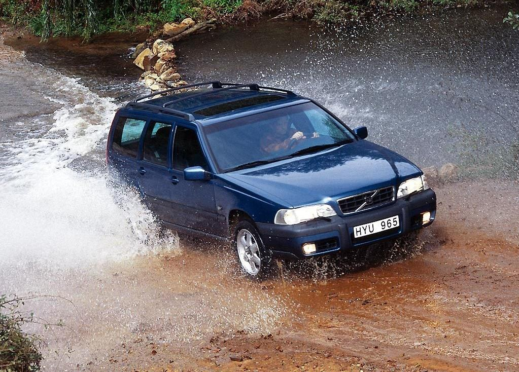 For years, Volvo never actually sold an SUV or crossover, even after those vehicles had become extremely popular in the U.S. The company's first attempt to please potential 4x4 buyers was the first Cross Country model, the V70 XC, introduced in 1997. It was essentially a raised-up version of the standard V70 wagon, with unpainted black plastic body cladding and unique exterior trim.