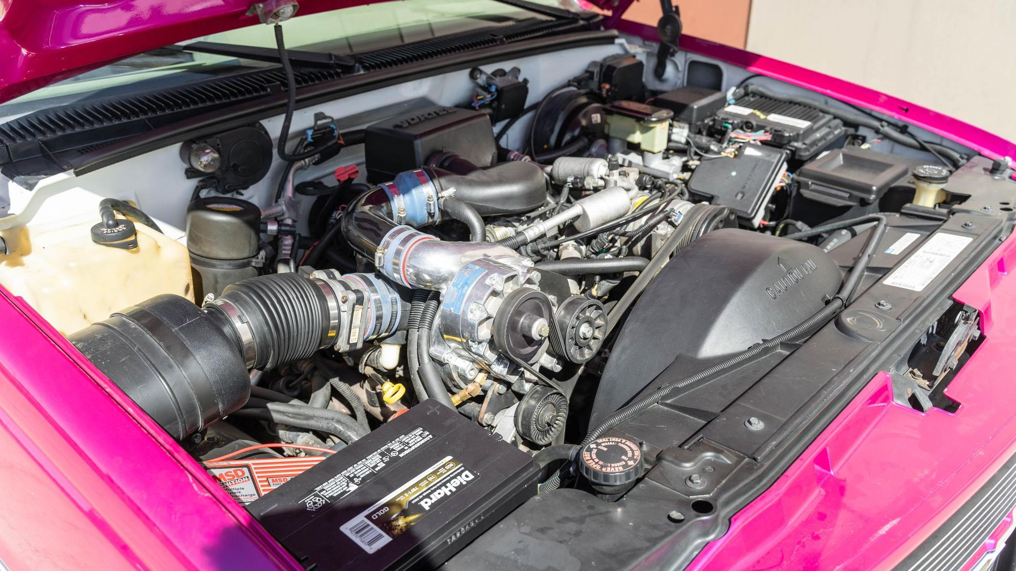 The combination of pink, purple and white paint and the nostrils on the hood of this machine aren't going to be everyone's cup of tea, but man, it's just so '90s I couldn't not write about it when I saw the listing pop up on Cars & Bids. Remember the days when a 5.7-liter naturally aspirated V8 only made 250 hp and 335 lb-ft of torque?