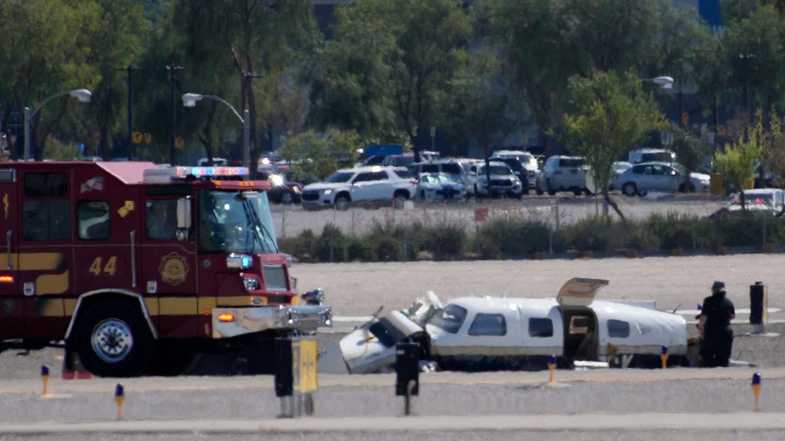 While the cause of the collision remains unknown at this time, the FAA reported that it occurred at 12:04pm on Sunday while both planes were in the airport's traffic pattern. (A traffic pattern is like a virtual highway in the sky that leads towards an airport's various runways.) Following the crash, the Clark County airport stayed open for air traffic. However, two out of its three runways remained closed into the evening to allow first responders and investigators to work on the scene.