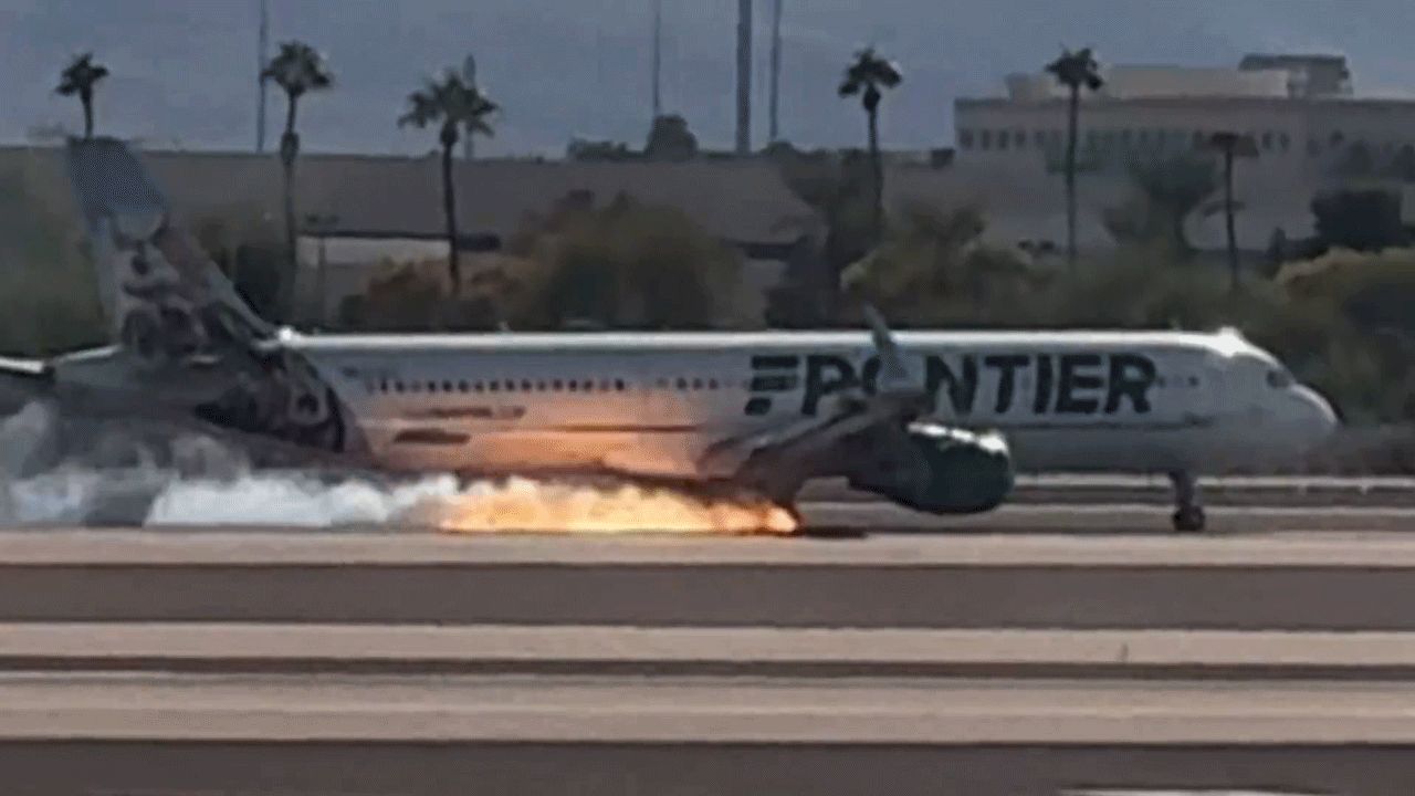 Frontier Flight Trails Flames While Landing In Las Vegas