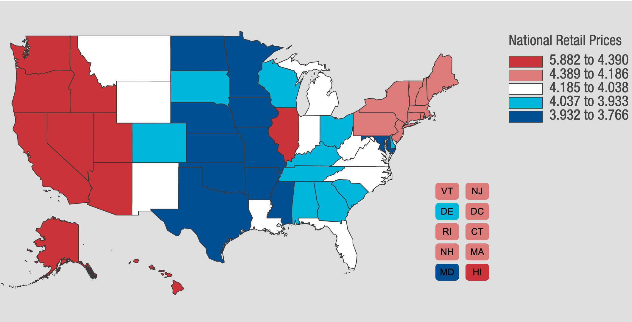Hawaii – $5.08 Regular | $5.29 Mid | $5.54 Premium | $5.41 Diesel