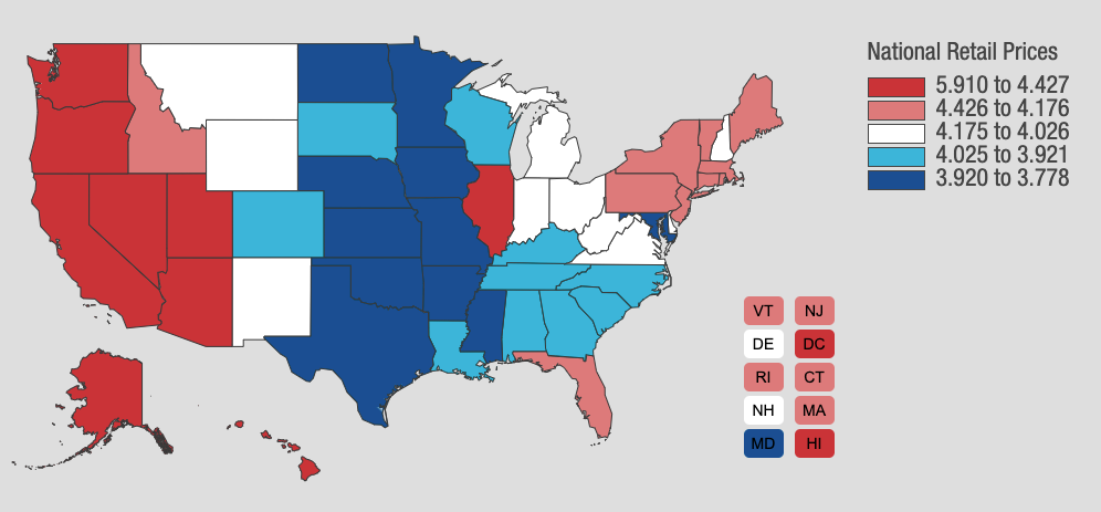 Alaska – $4.74 Regular | $4.92 Mid | $5.09 Premium | $5.21 Diesel