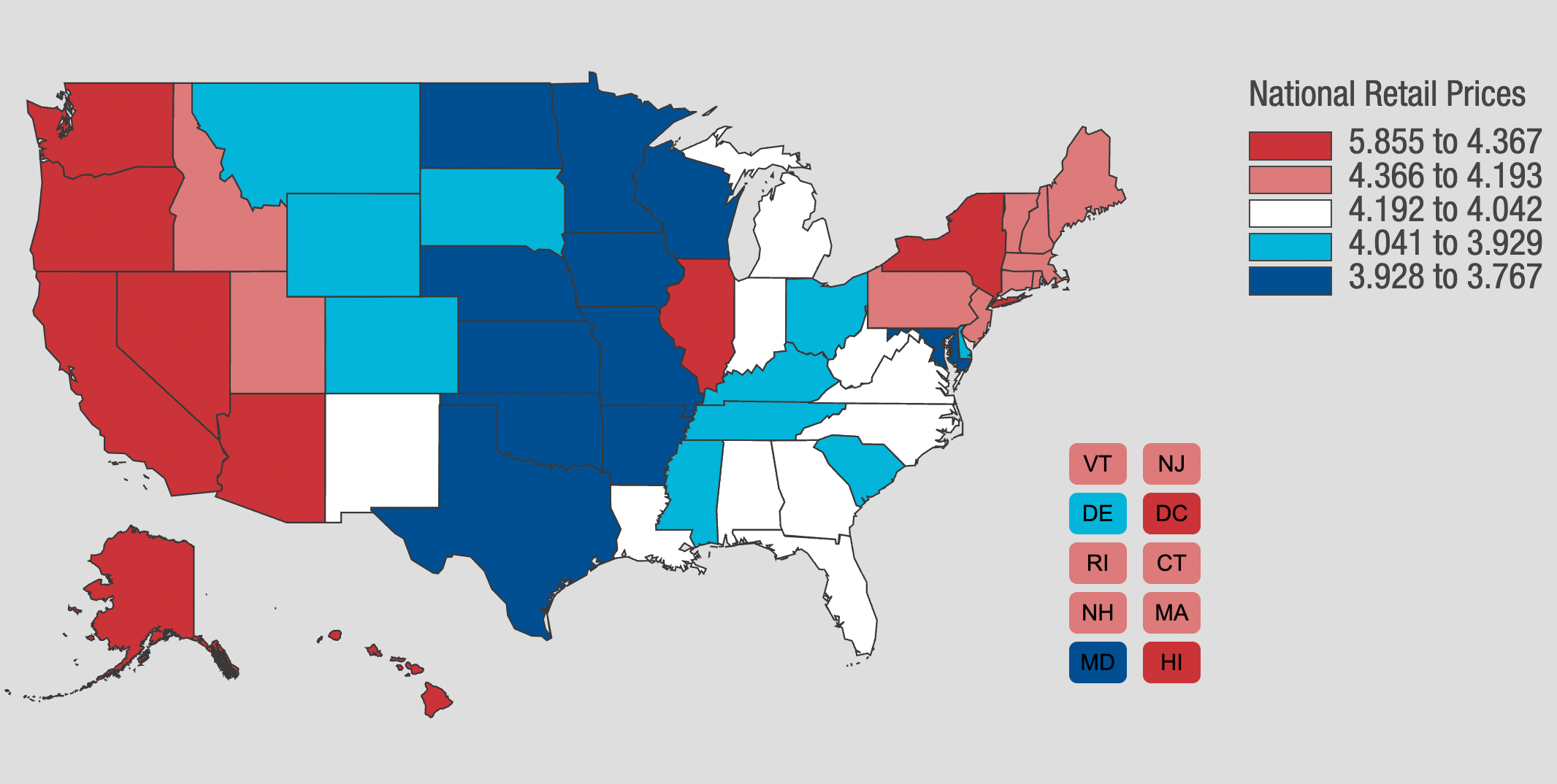 Washington – $4.72 Regular | $4.93 Mid | $5.12 Premium | $5.38 Diesel