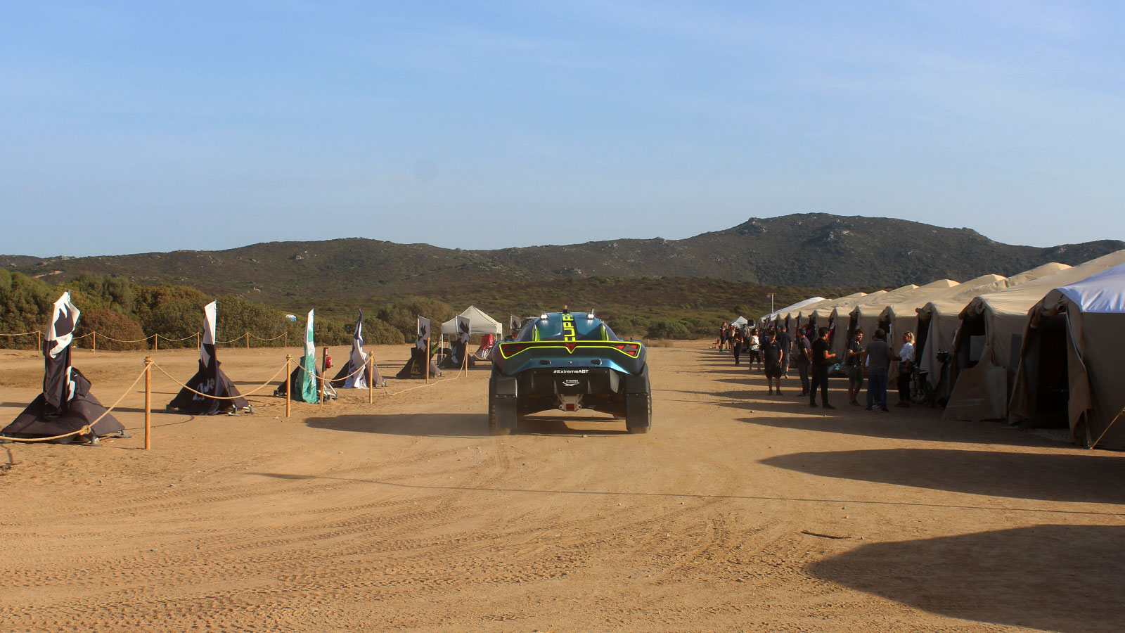 For the seventh and eighth rounds in its 2023 season, Extreme E set up in Sardinia, Italy, where it took over a NATO base on the southwest of the Mediterranean island. At the site, Extreme E sets up everything from scratch, including a pit lane, race control, media center and even a catering outfit for everyone on site to eat breakfast, lunch and dinner.