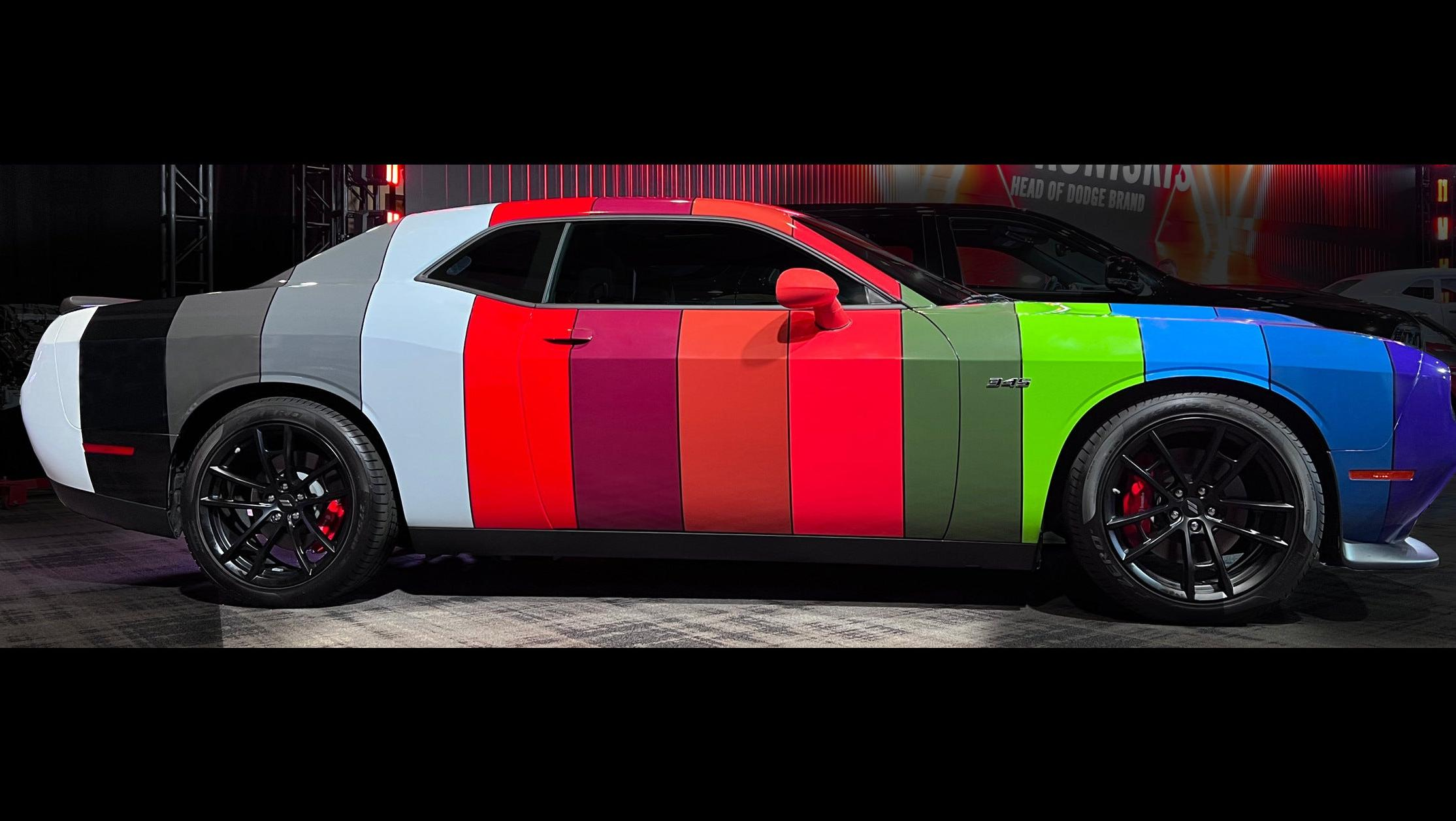 During Dodge Speed Week in August, the company unveiled a very-striped version of the Challenger meant to show off the 14 "hi-impact" colors buyers can option for their Mopar muscle car. It was a nod to the "Paint Chip" Plymouth 'Cuda brochure (that a collector eventually turned into a real vehicle) that had a similar striped motif showing off all of its color options.