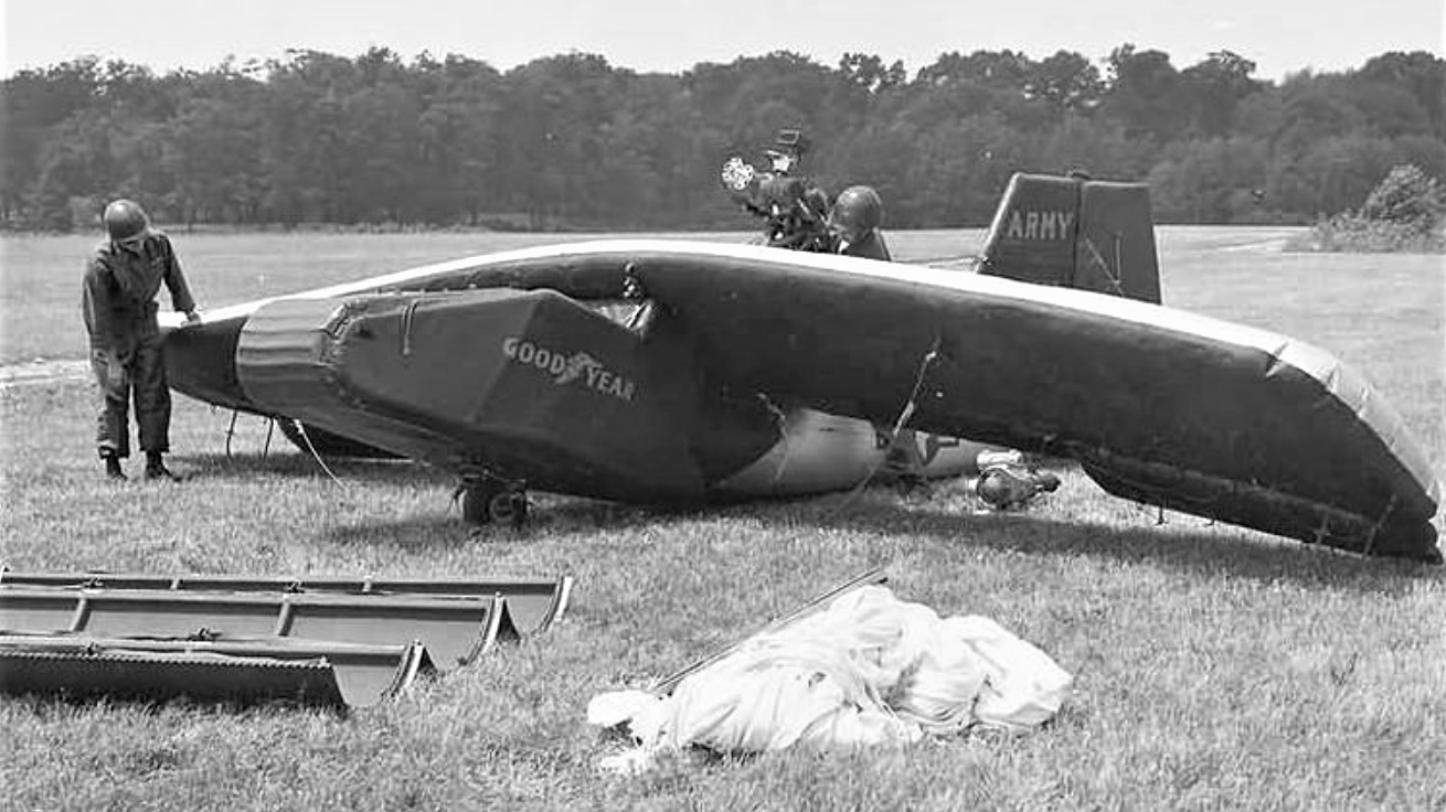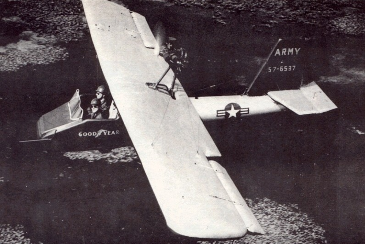 Back in the 1950s, Goodyear had a concept for a kind of plane that some thought was improbable. Designed as a way for stricken pilots to extract themselves from behind enemy lines, the Inflatoplane was a rubber aircraft that could be air-dropped in a box, inflated in just five minutes, then flown to safety.