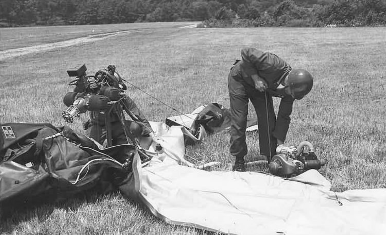 An Inflatoplane could even take some arms fire as the engine also worked to keep the craft inflated. And when it was done flying it could be packed up into a 44 cubic-foot crate, small enough to fit on a Jeep's trailer or in the back of some cars.