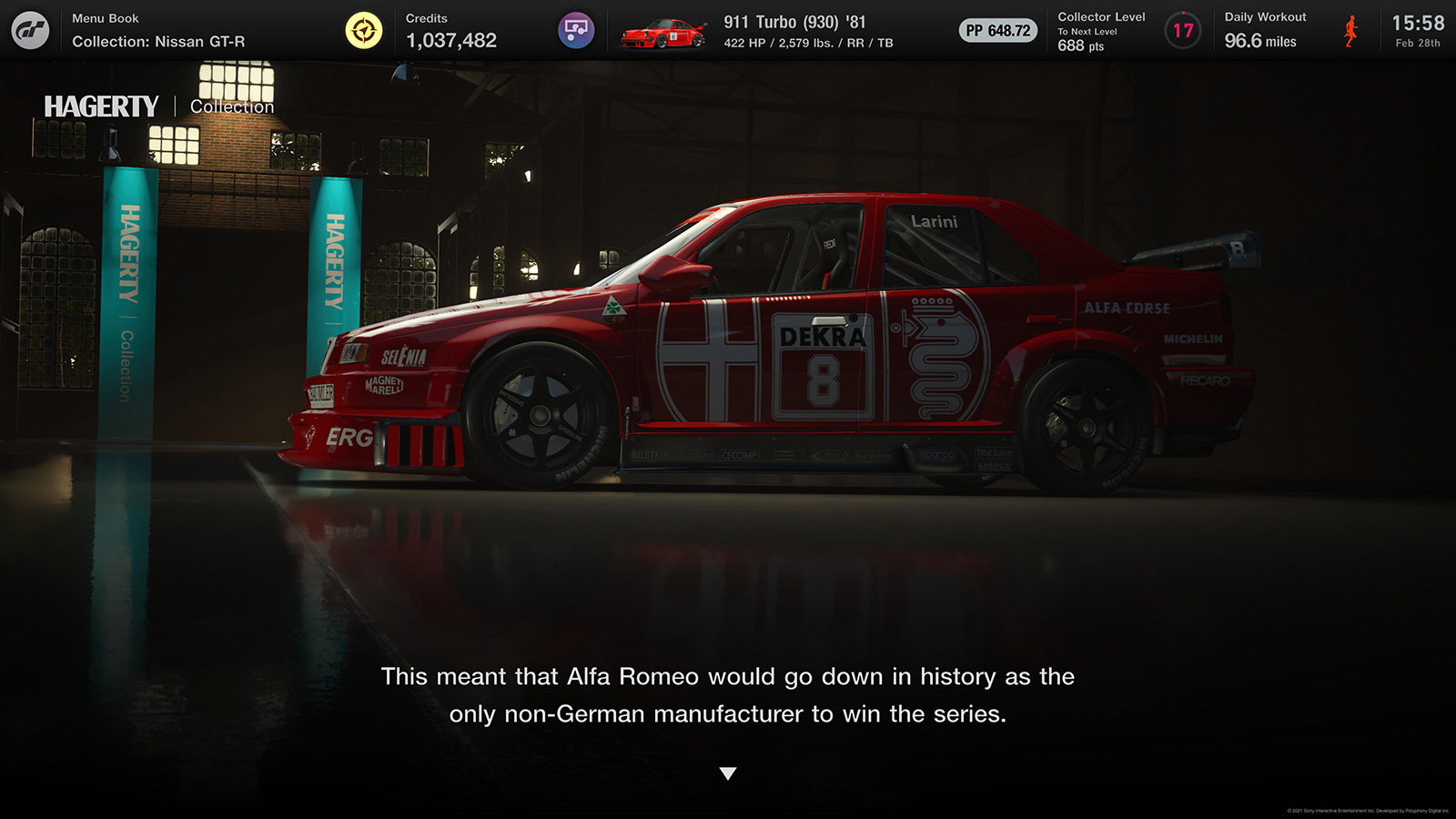 The trouble is that these Menu Books move you through select groupings of the game's 430-plus cars very deliberately, and there are many things you can't do until you've checked off a bunch of them. You have to put in roughly four hours of play time before you're able to go to GT Auto and change wheels and bumpers; 10 hours before the Hagerty Collection dealership (yes, it's actually branded) will open its doors to you.