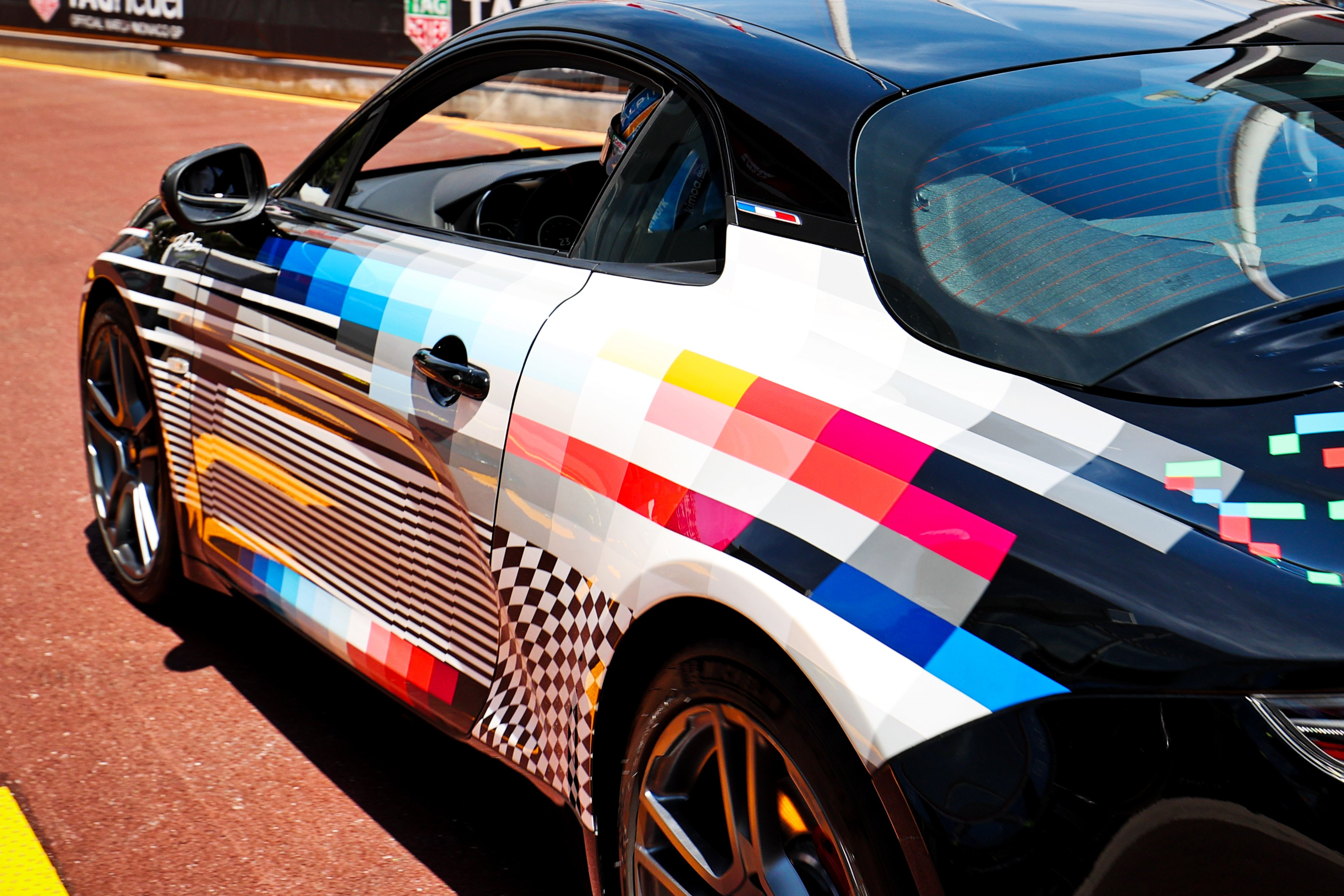 You might remember Pantone from his work with Ken Block's rallycross team a few years back. It looked dope on those cars, and it still looks dope today on the Alpine. His work is uniquely his own, and blends well with the Alpine's silhouette. Obviously he was restricted to using Alpine's color strategy here, but still managed to make it uniquely a Felipe Pantone work of art.