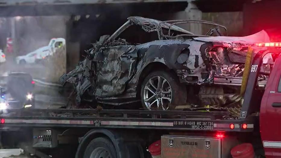 One of the thieves drove off in a Ford Mustang, crashing it around 4:00 am. The car caught fire, and the driver died at the scene. Two of the other stolen cars were involved in the wreck, but it's not clear whether or no anyone else was injured.