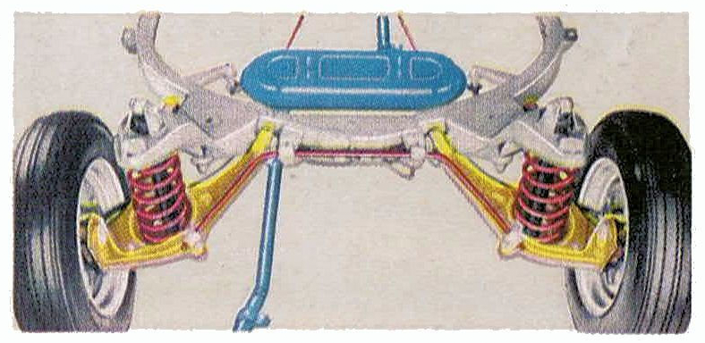 It's got double-wishbone suspension up front, which is nice, though that angled-arm rear suspension set up is just kind of making me feel crazy. Who sets up something like that? I mean, it must work basically fine, but it just feels so counterintuitive and wrong.