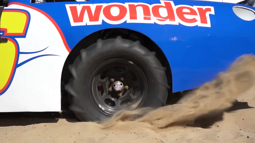 The big modification they made was adding huge paddle wheels to the rear of the stock car, meaning it would kick up astronomical amounts of sand, but it would look sick as hell in the process.