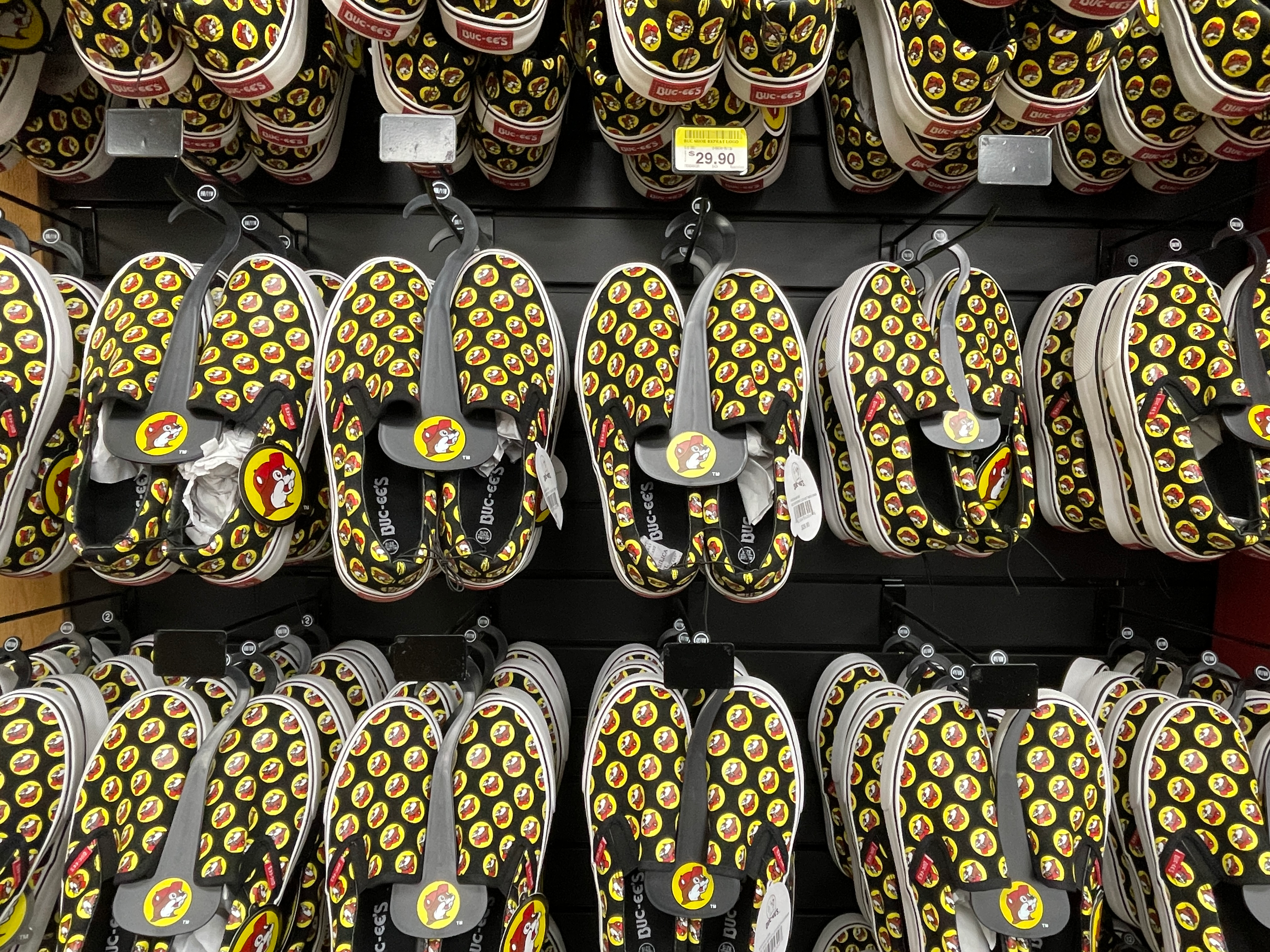 There are worse things/patterns I have come across. This is definitely a die-hard Buc-ee's dream footwear.