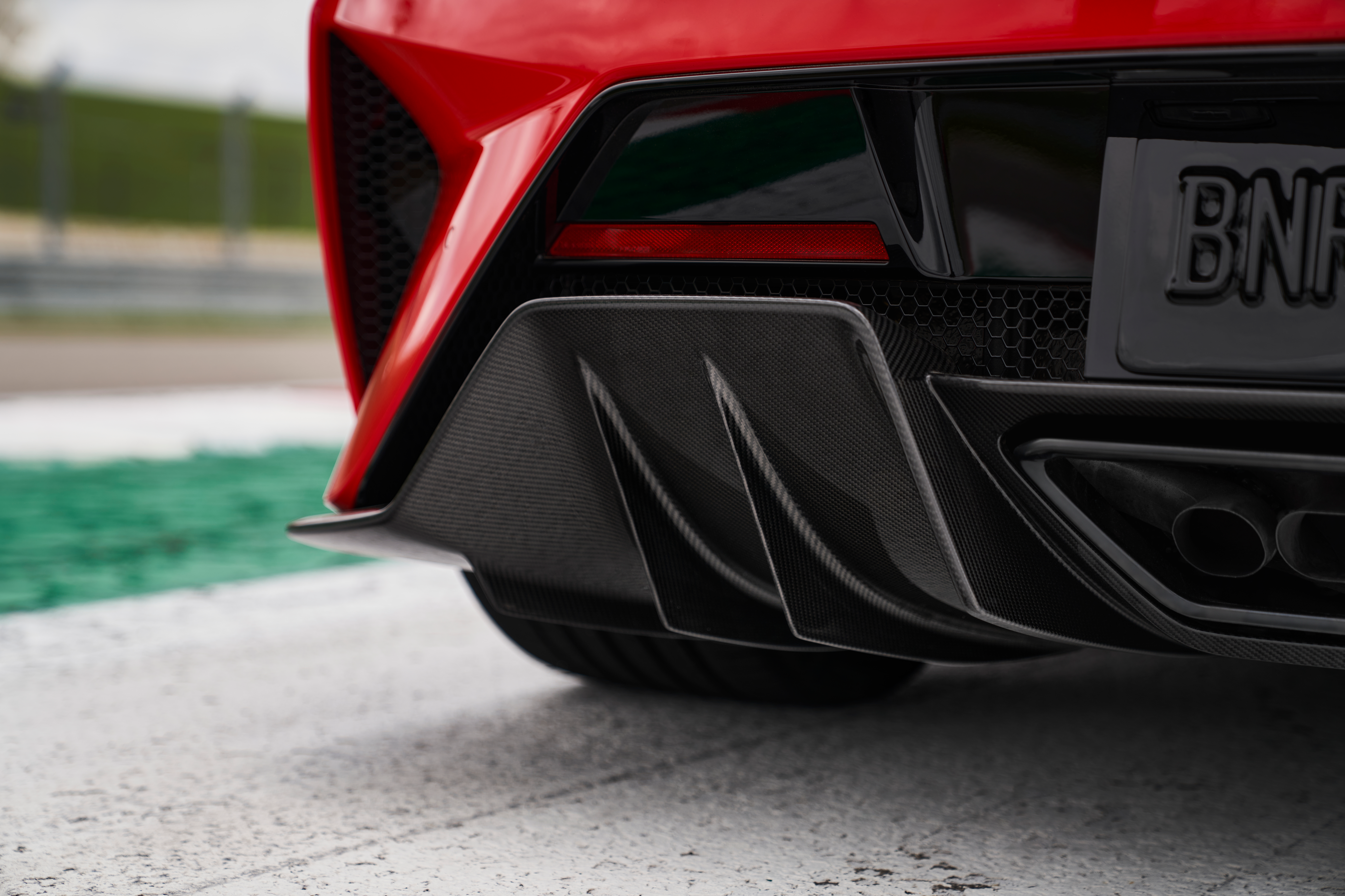 Instantly recognizable by its distinctive and more aggressive front and rear styling, NSX Type S also features unique 5-spoke wheels, stickier Pirelli P-Zero tires, retuned Adaptive Damper System, Type S decals, a standard carbon fiber roof and available Gotham Gray matte paint.