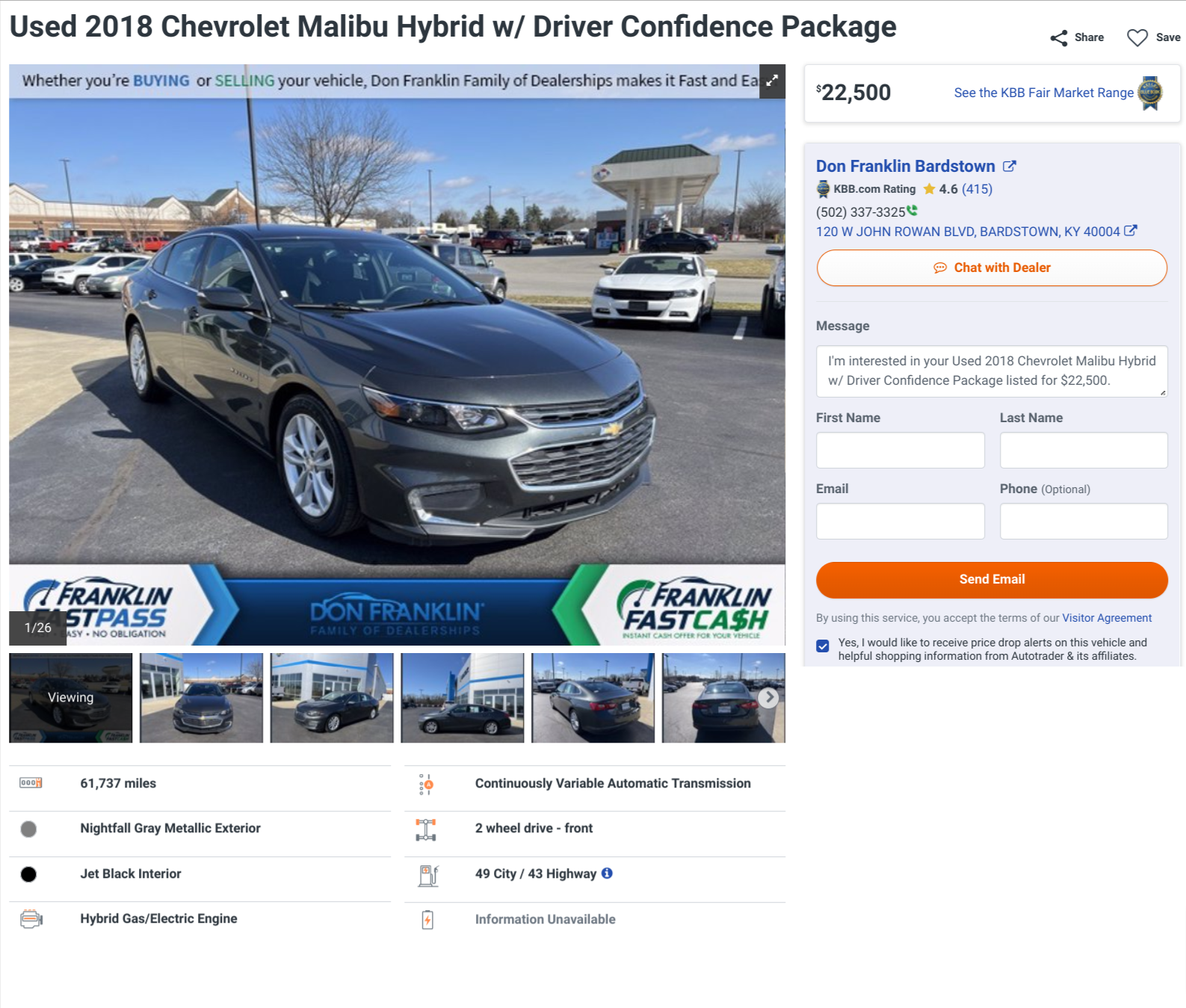 Most folks that are looking at hybrids, EVs, and plug-ins are already well aware of models like the Chevy Bolt, Nissan Leaf, and numerous offerings from brands like Honda, Toyota, Hyundai, and Kia such as the Insight, Clarity, Prius, RAV4 Hybrid, Ioniq, and Niro. Naturally, these models get snatched up quickly, and used car prices on these models are often dangerously close to the MSRP on a new model.