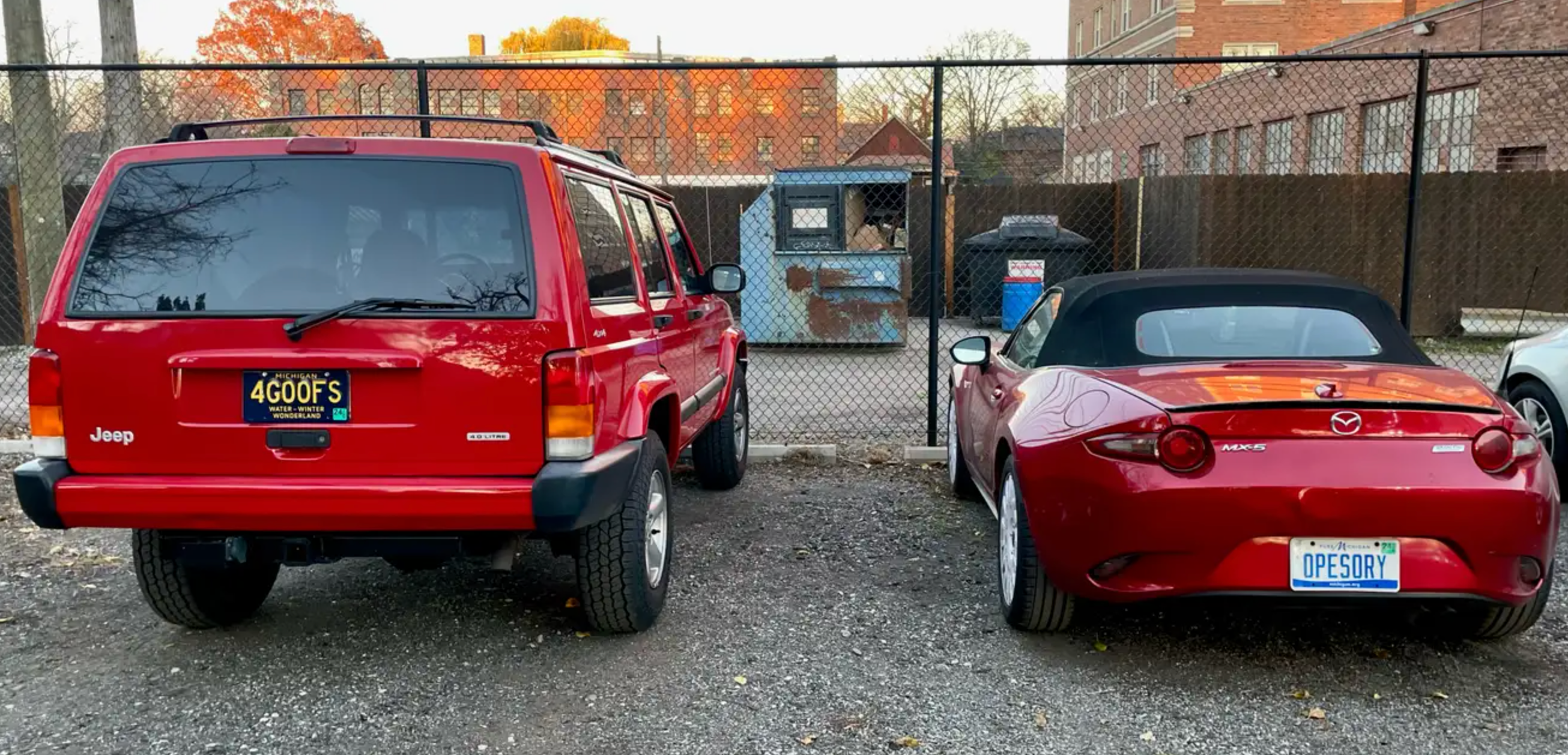 I bought both of the terrible little machines in the header photo for one fifth of the suggested $100,000 budget (and less than the motorcycle in the corner) and they both make me laugh so much every time I drive them. Great cars. Great value. Great two-car solution.