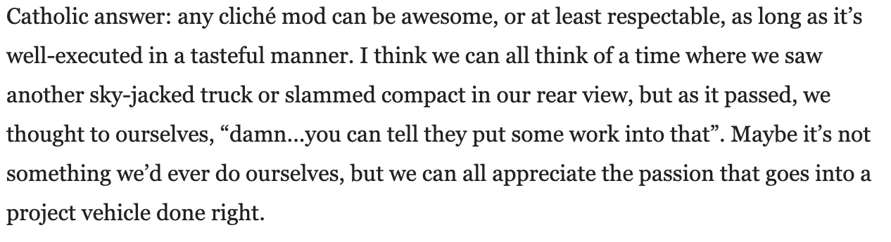 We asked readers what cliché car mods they secretly loved. These were their answers.