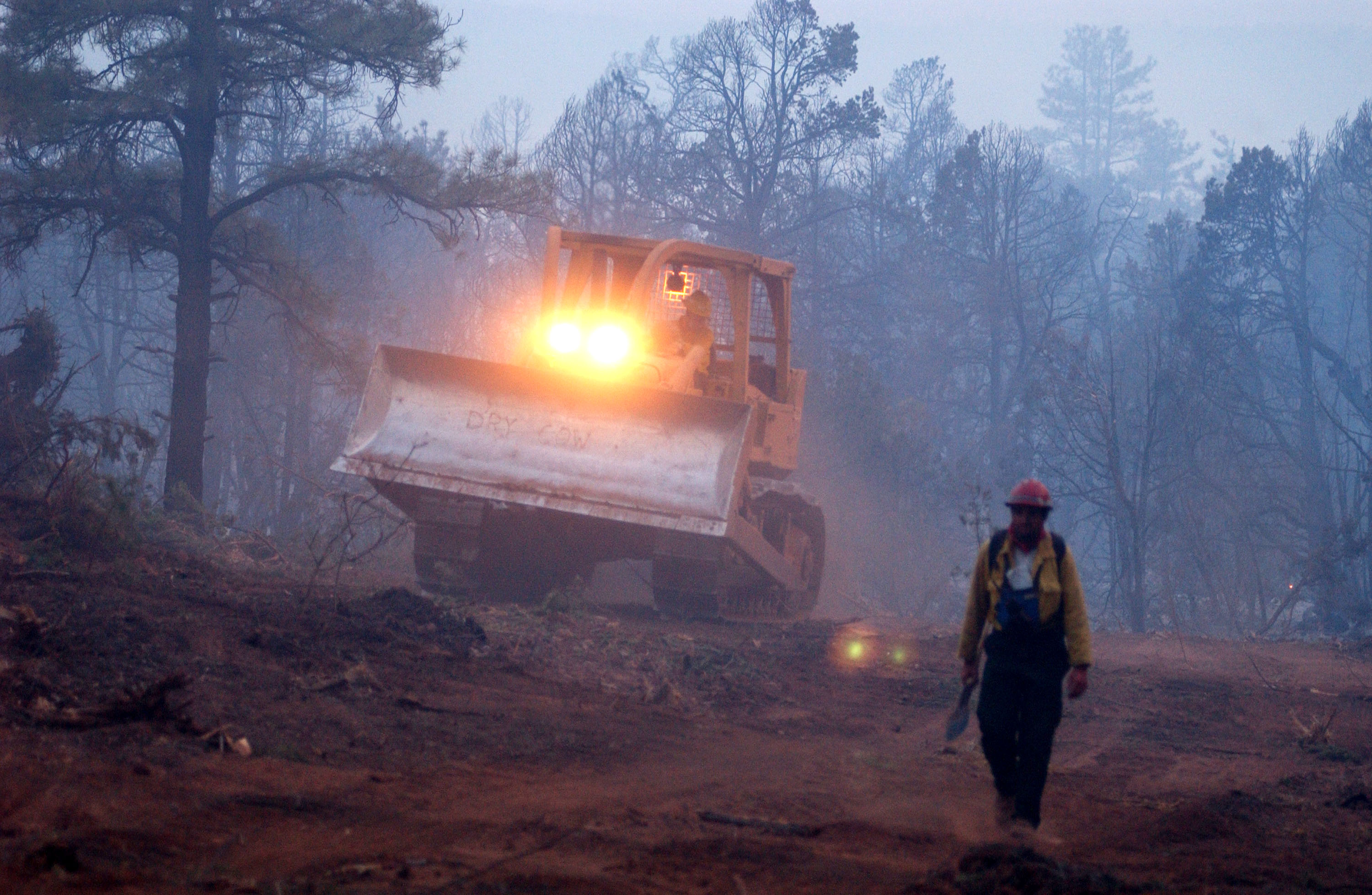 I operate a bulldozer used for fighting forest fires and drive a 40' transport to get it to the fires.